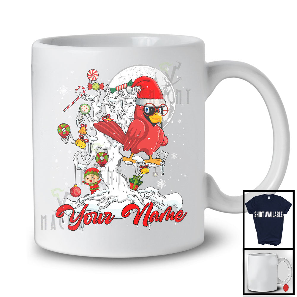 Personalized Cardinal Bird Santa On Christmas Tree, Adorable ELF Snow, Custom Name Bird Lover T-Shirt