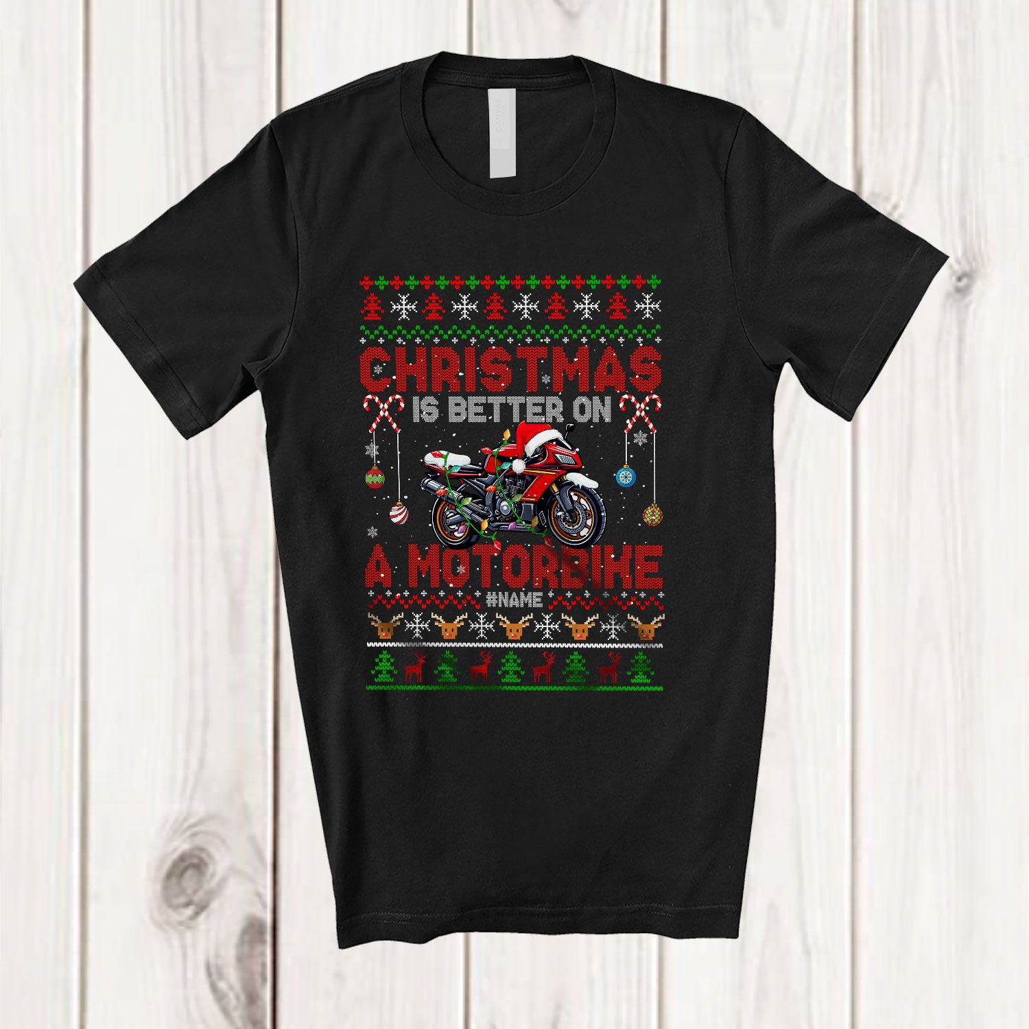 Personalized Christmas Is Better On A Motorbike; Joyful Custom Name Santa Motorbike; Family T-Shirt