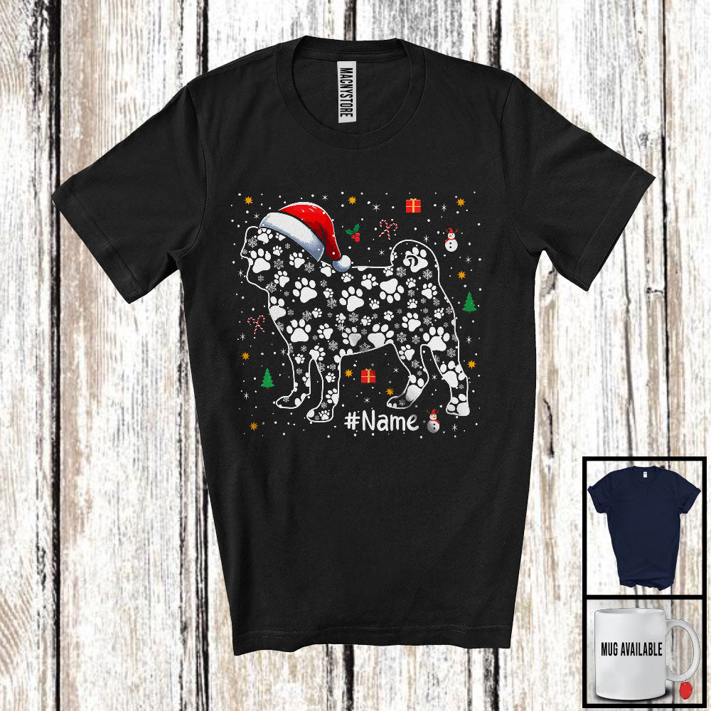 new MacnyStore - Personalized Christmas Santa Pug Paws Shape; Cheerful X-mas Custom Name Pug; Family T-Shirt – Macnystore