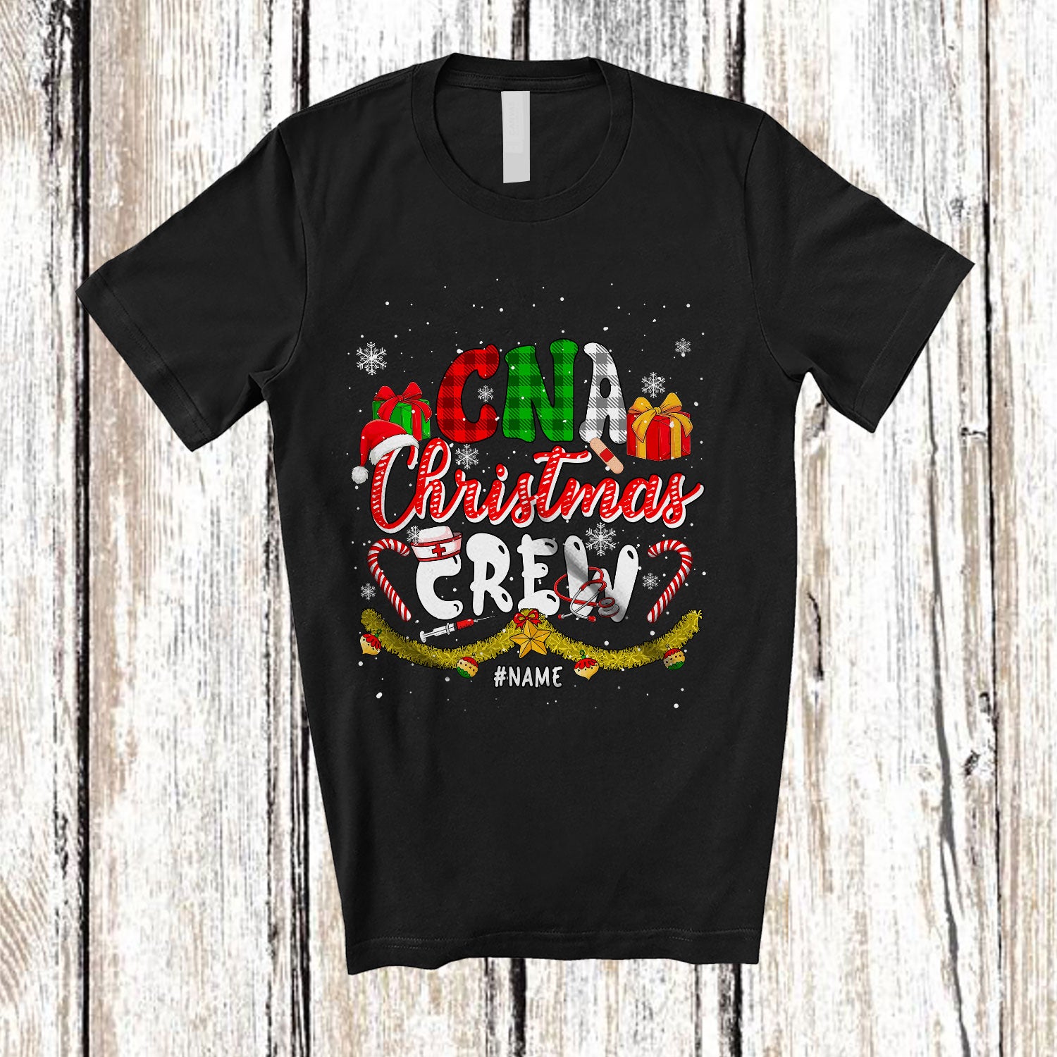 Personalized CNA Christmas Crew; Amusing X-mas Plaid Snow; Custom Name Nurse Nursing T-Shirt