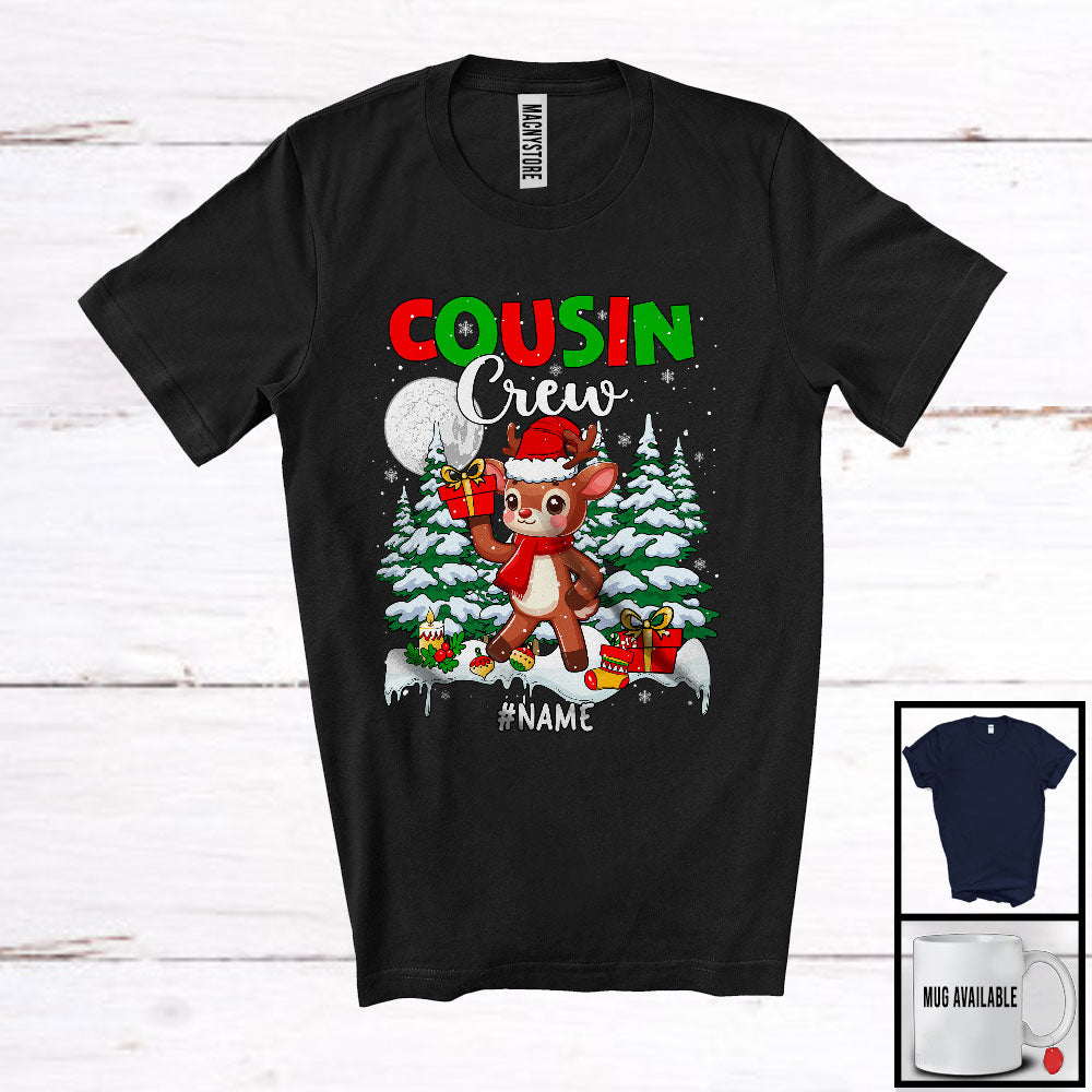 new MacnyStore - Personalized Cousin Crew; Adorable Christmas Lights Tree Reindeer Snowing; Custom Name Family T-Shirt – Macnystore
