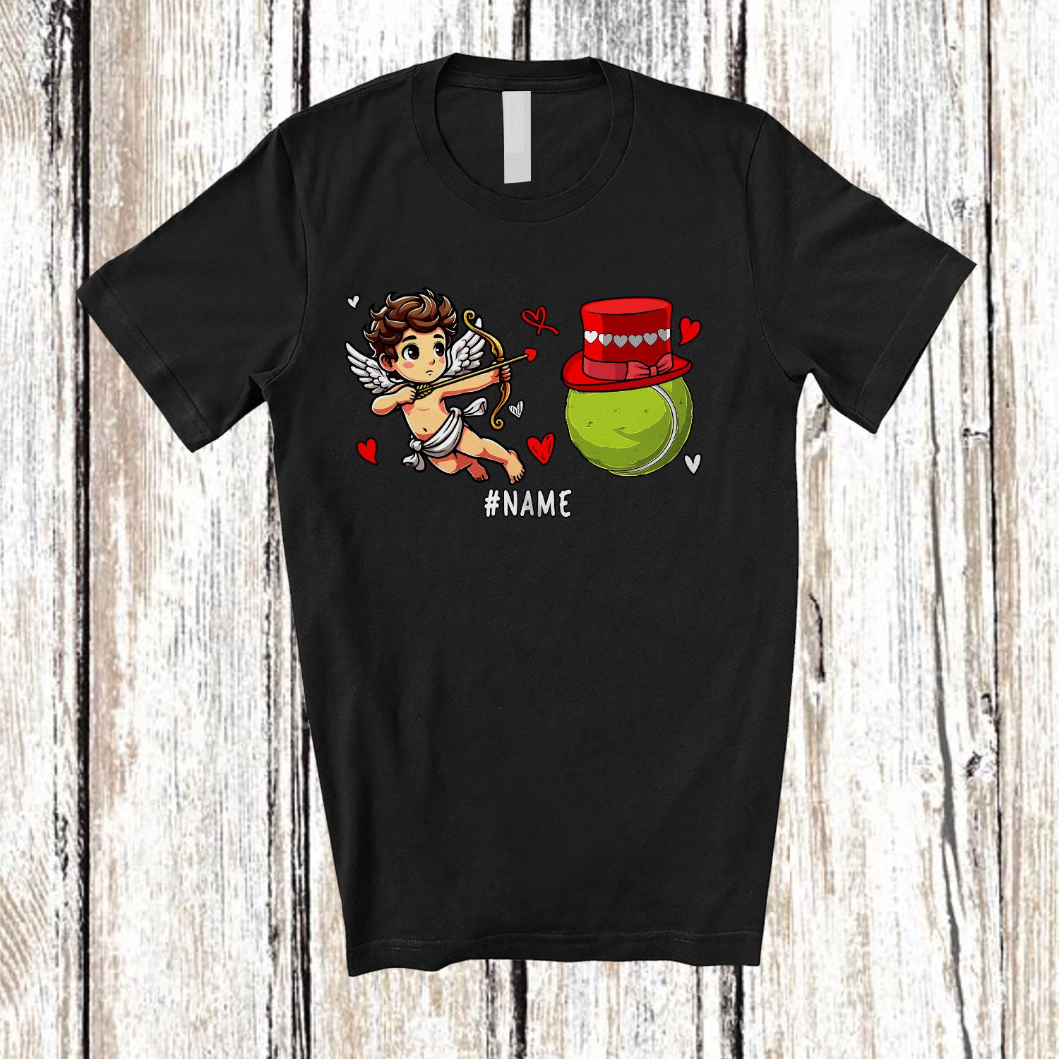 Personalized Cupid With Tennis Ball; Lovely Valentine Hearts; Custom Name Tennis Player T-Shirt