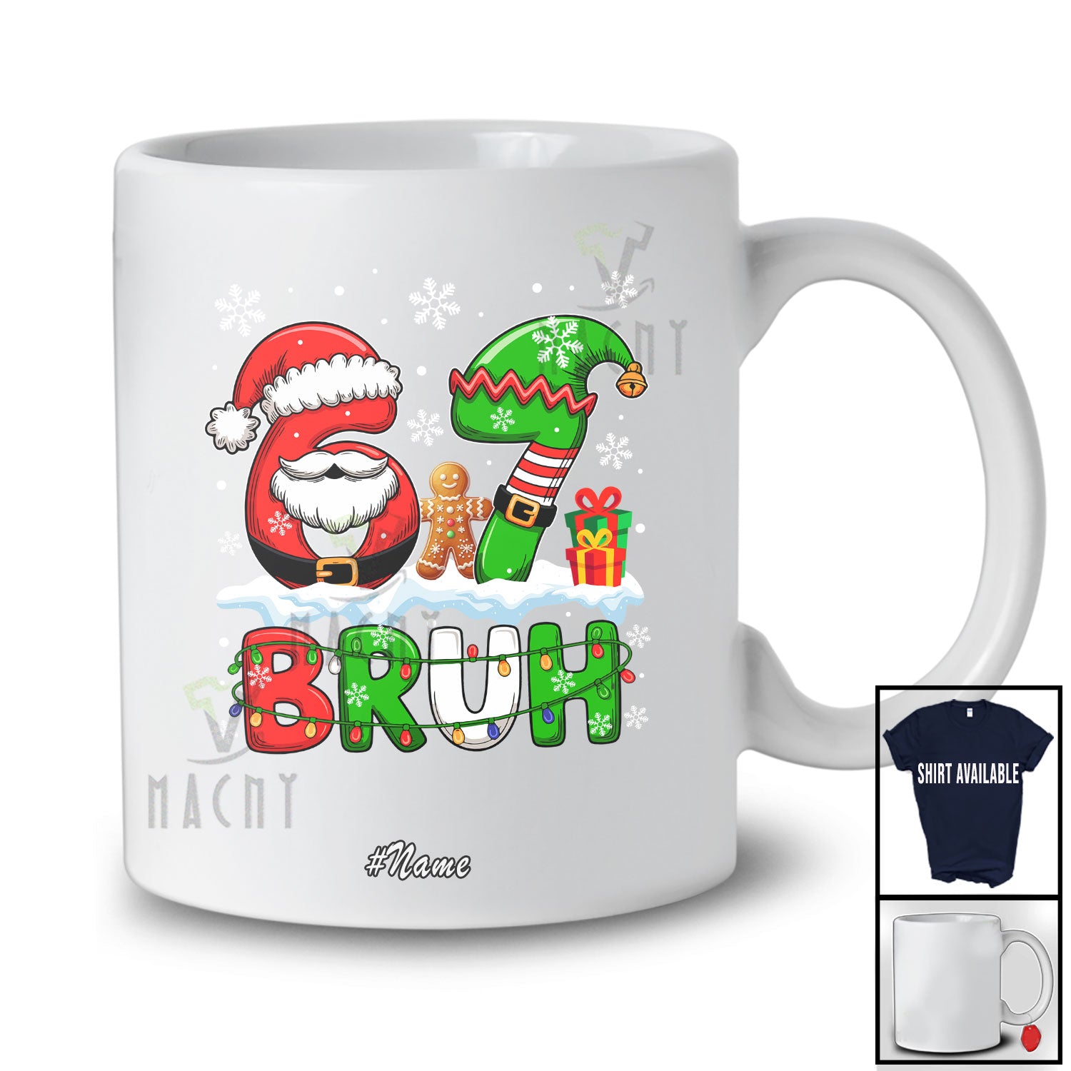 This Personalized Custom Name 67 Bruh; Humorous Christmas Lights Six Seven Santa Elf Family T-Shirt is great idea gift for your family, friends in this birthday, christmas, mother's day, father's day, patrick's day or any holiday.