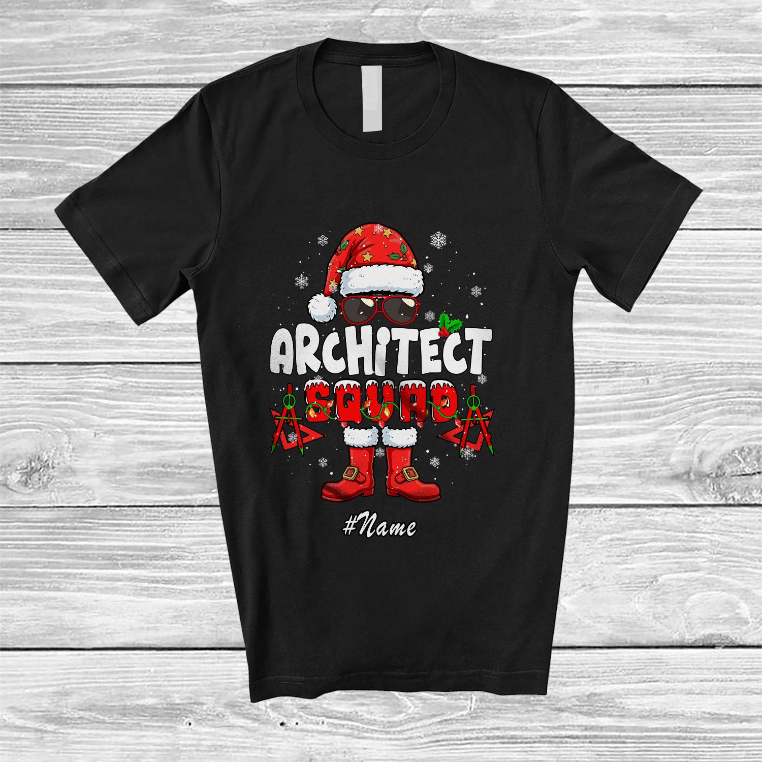 • Personalized Custom Name Architect Squad; Amazing Christmas Santa Construction T-Shirt. This cotton t-shirt is a durable staple product with a classic fit. One of the most popular items, it has a relaxed style made for everyday and casual wear.