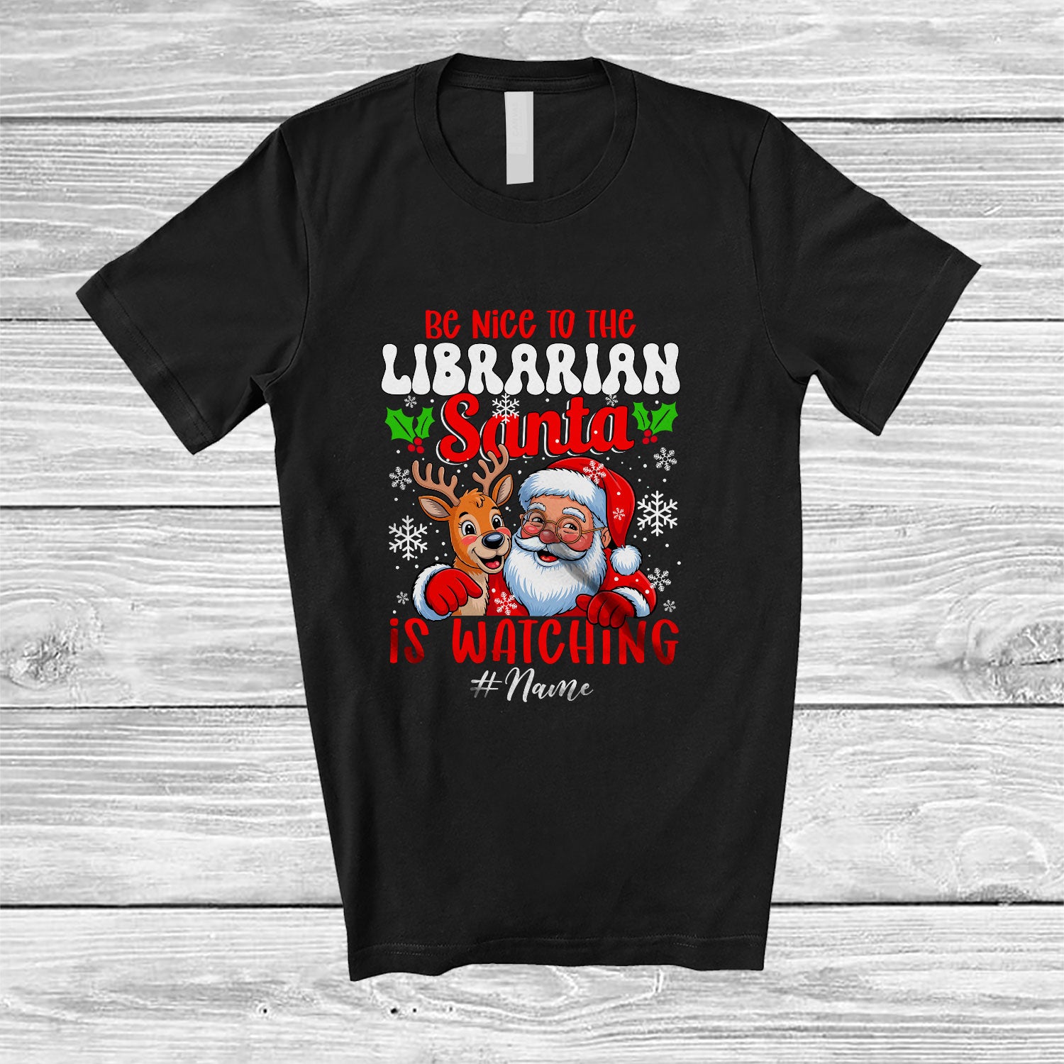 Personalized Custom Name Be Nice To Librarian; Joyful Christmas Santa Reindeer; Women Jobs T-Shirt