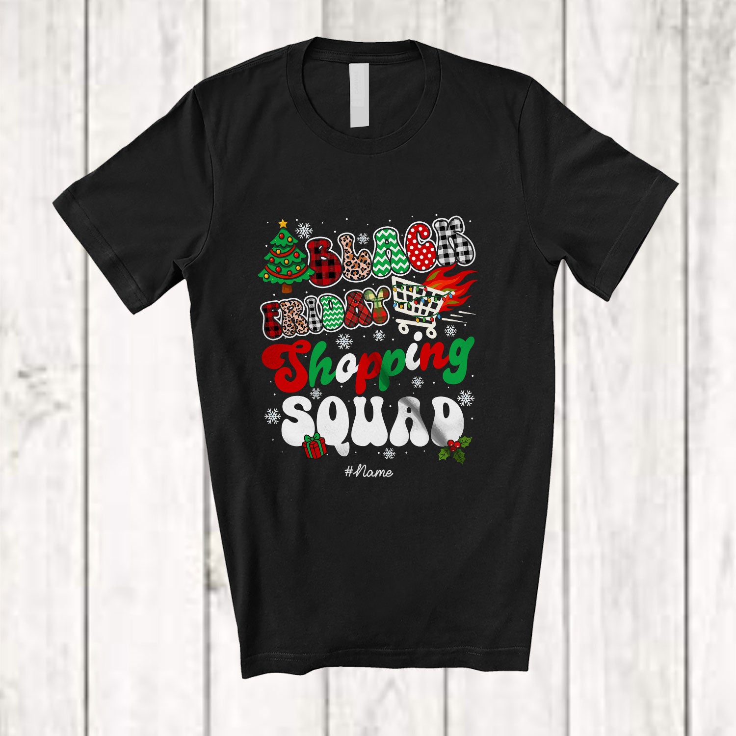 Personalized Custom Name Black Friday Shopping Squad; Cheerful Christmas Plaid Leopard Family T-Shirt