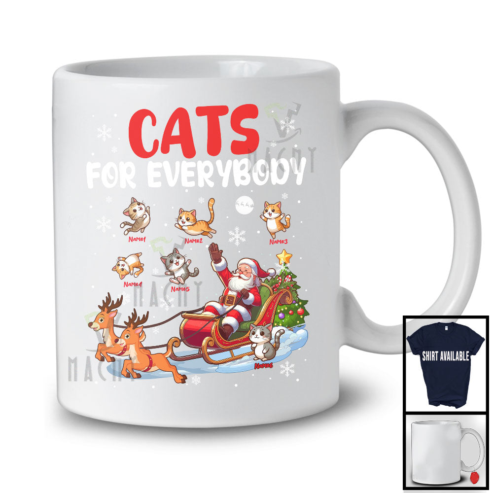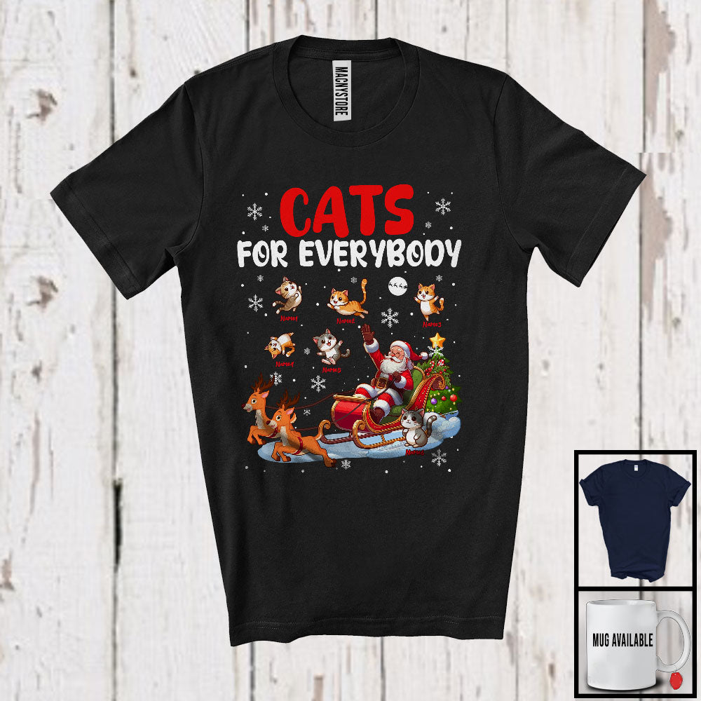 Personalized Custom Name Cats For Everybody; Merry Christmas Santa Reindeer Sleigh; Snowing T-Shirt