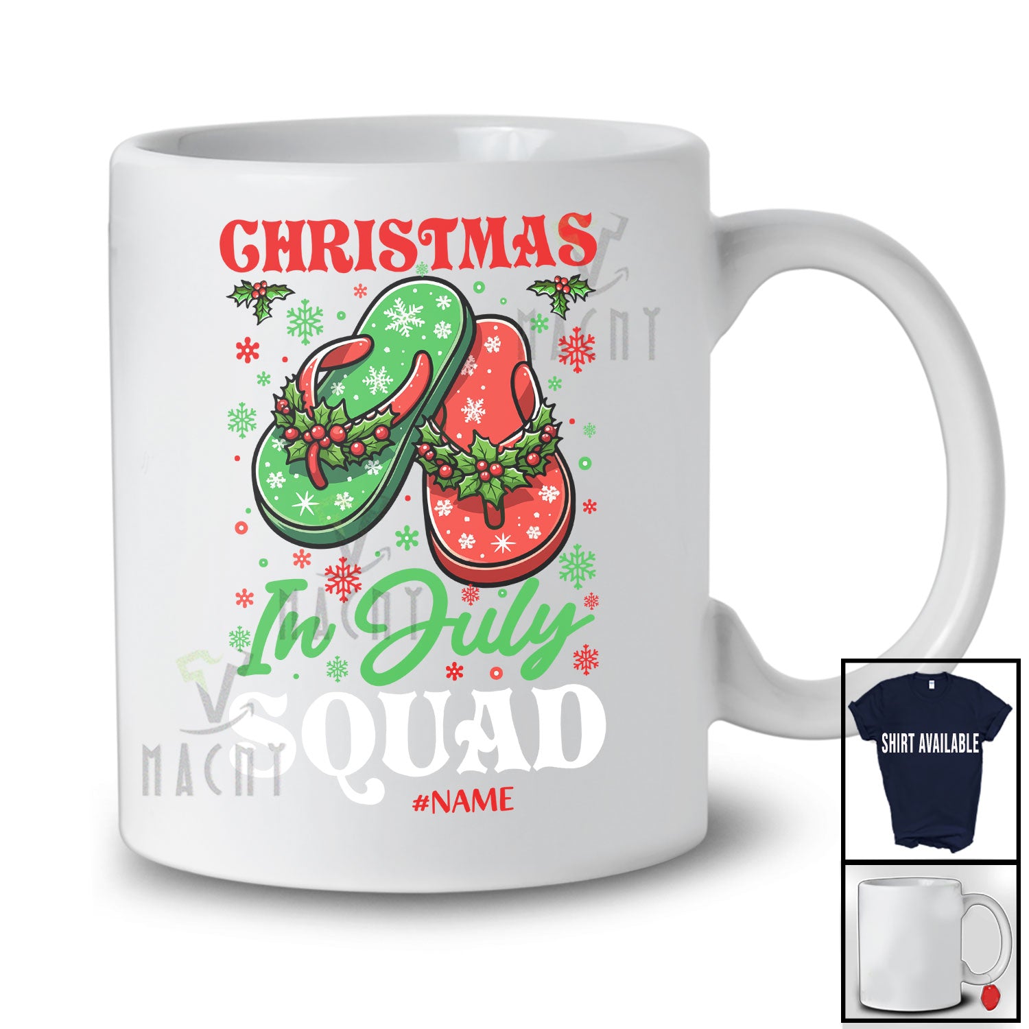 Personalized Custom Name Christmas In July Squad; Joyful Summer Vacation Hawaiian Flip Flops T-Shirt. This cotton t-shirt is a durable staple product with a classic fit. One of the most popular items, it has a relaxed style made for everyday and casual wear.