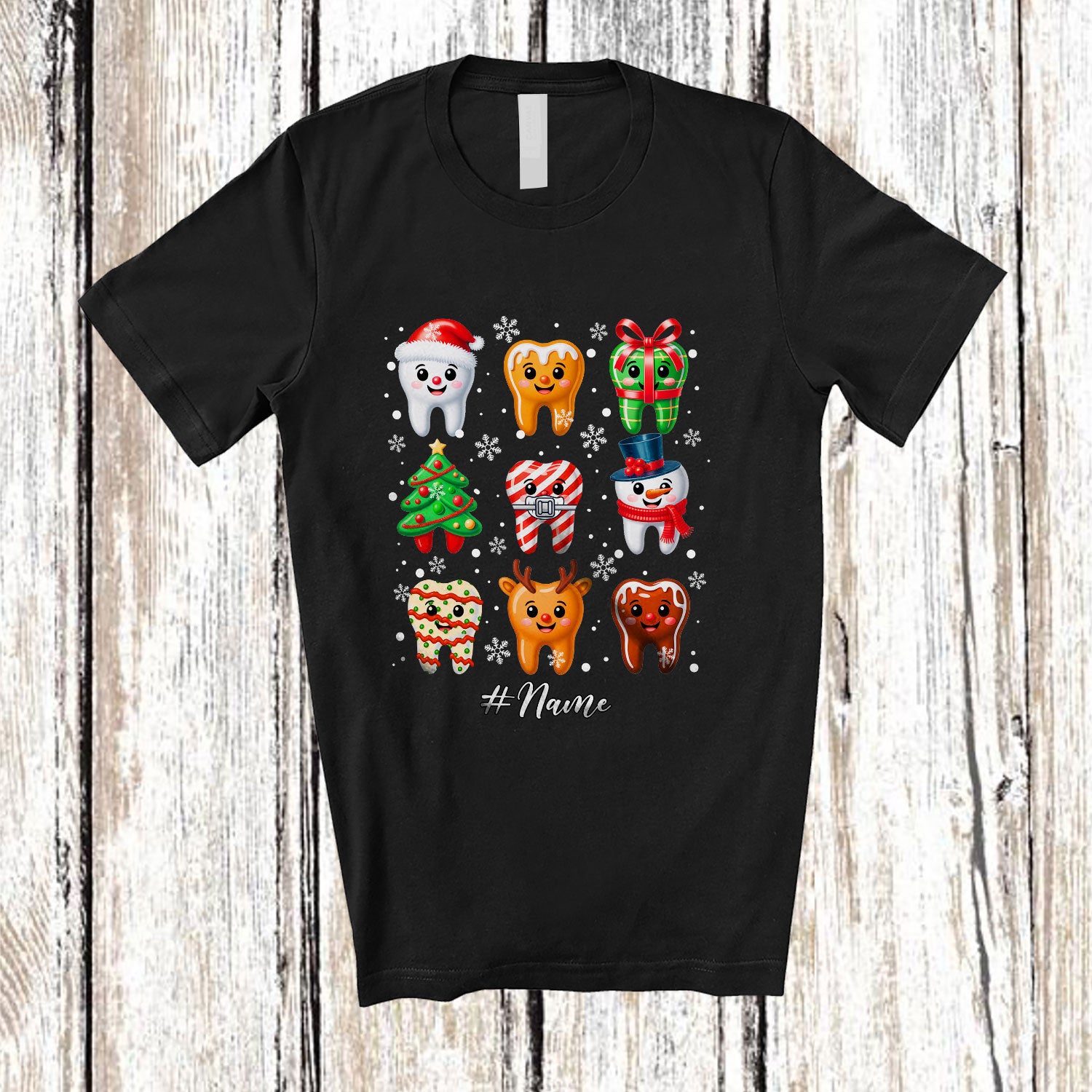 Personalized Custom Name Christmas Tooth Collection Santa X-mas Tree; Lovely Dental Dentist T-Shirt. This cotton t-shirt is a durable staple product with a classic fit. One of the most popular items, it has a relaxed style made for everyday and casual wear.