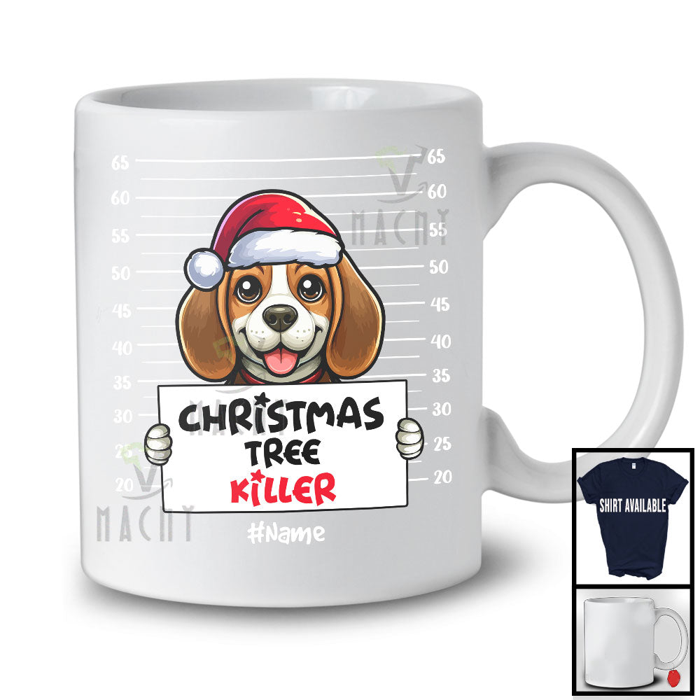 Personalized Custom Name Christmas Tree Killer; Lovely Santa Beagle Dog's Fault; Damage Tree T-Shirt