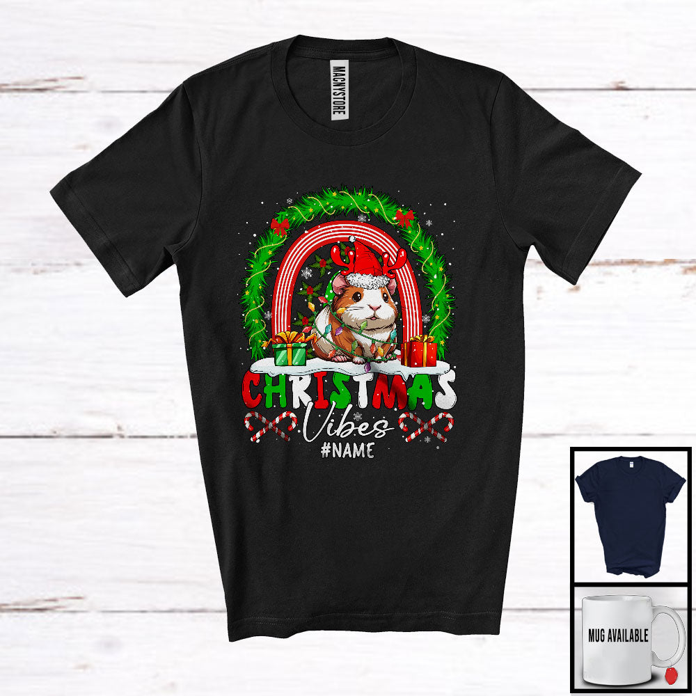 Personalized Custom Name Christmas Vibes; Fantastic X-mas Guinea Pig Reindeer Rainbow; Family T-Shirt