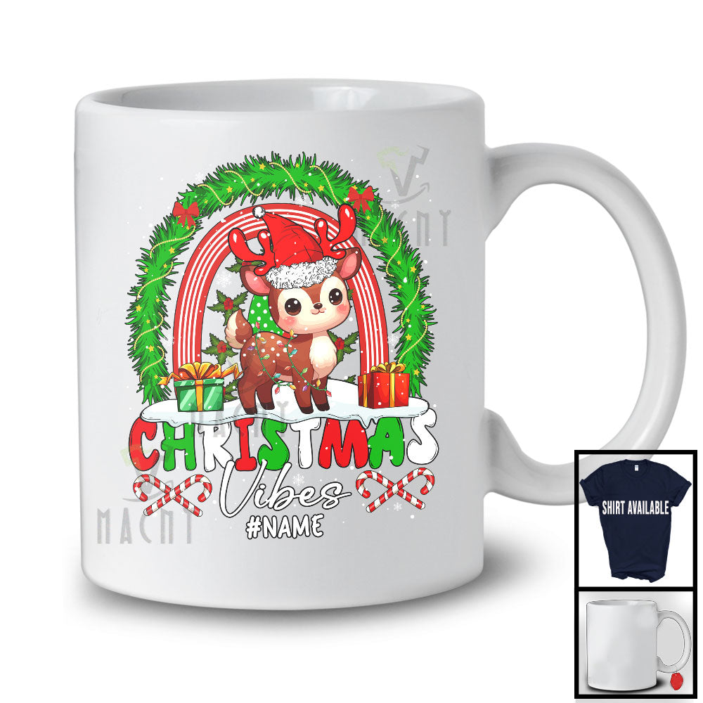 The Personalized Custom Name Christmas Vibes; Fantastic X-mas Reindeer Rainbow; Family T-Shirt destined to impress, and priced at only $12.95, for a limited time.