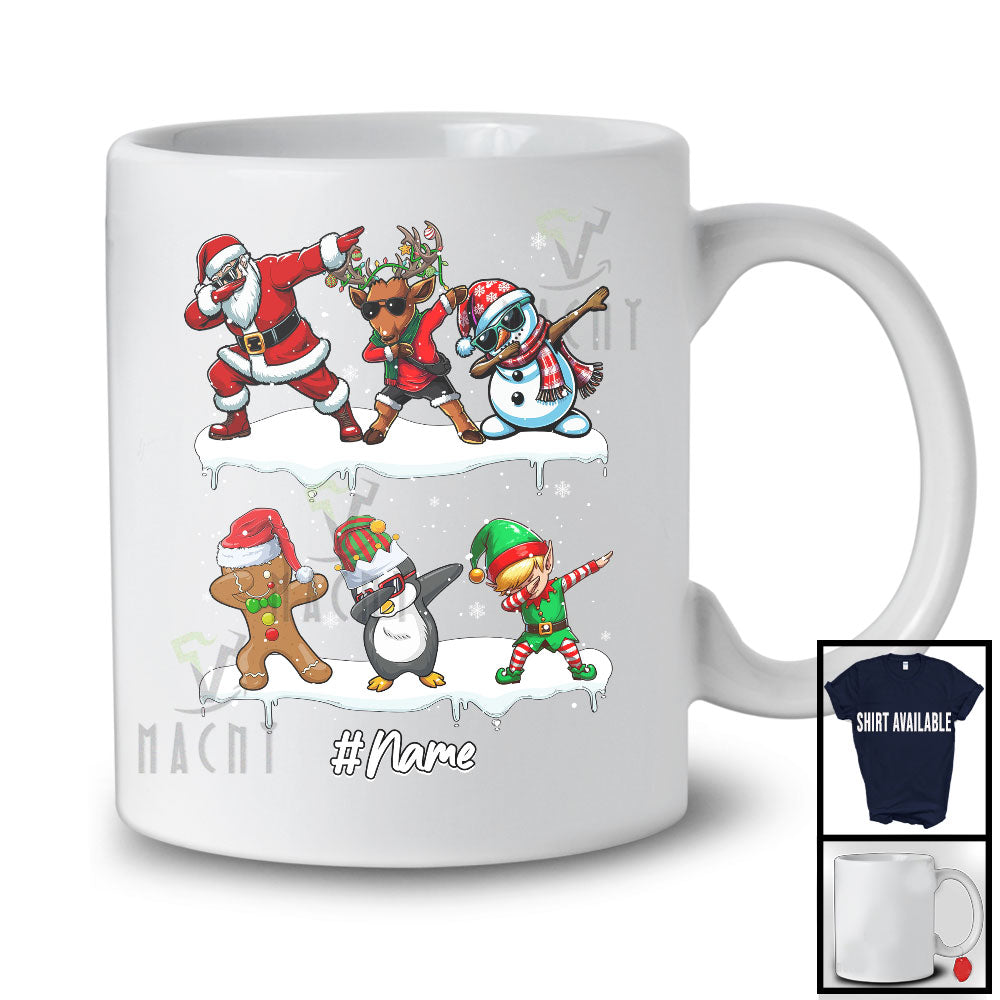 Personalized Custom Name Dabbing Santa Reindeer Gingerbread Penguin; Joyful Christmas Snowing T-Shirt