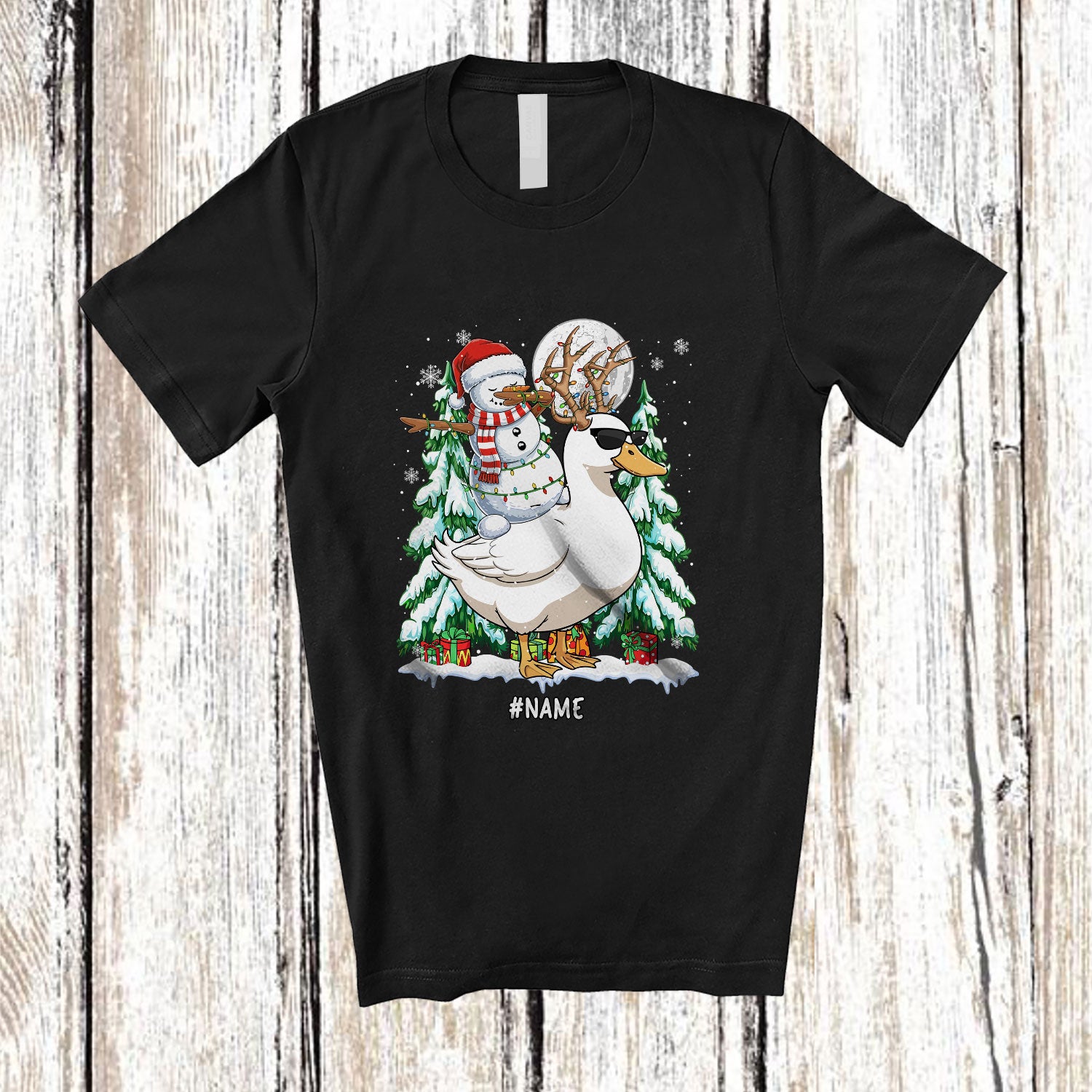 Personalized Custom Name Dabbing Snowman Riding Duck Reindeer; Lovely Christmas Farmer T-Shirt