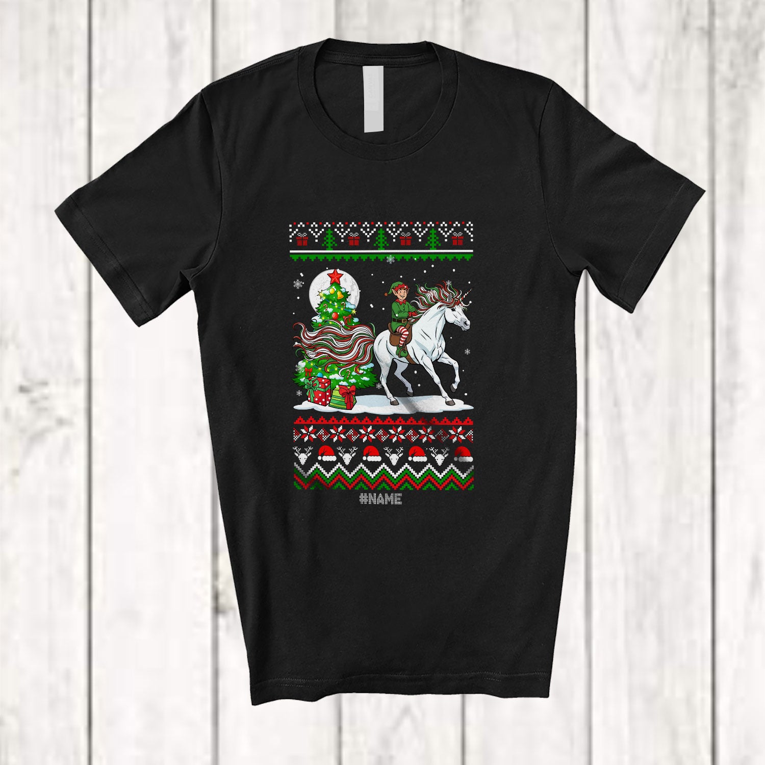 Personalized Custom Name Elf Riding Unicorn; Amazing Christmas Sweater Family Group T-Shirt