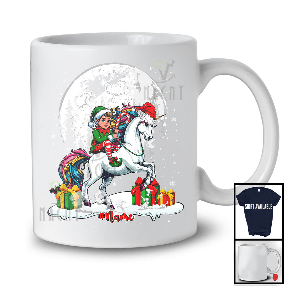 Personalized Custom Name Elf Riding Unicorn Santa; Cheerful Christmas Snowing; Animal Lover T-Shirt