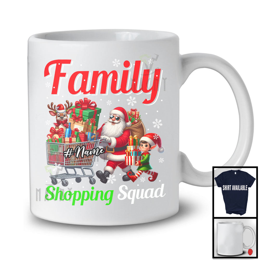 Personalized Custom Name Family Shopping Squad; Amazing Christmas Santa Elf; X-mas Group T-Shirt