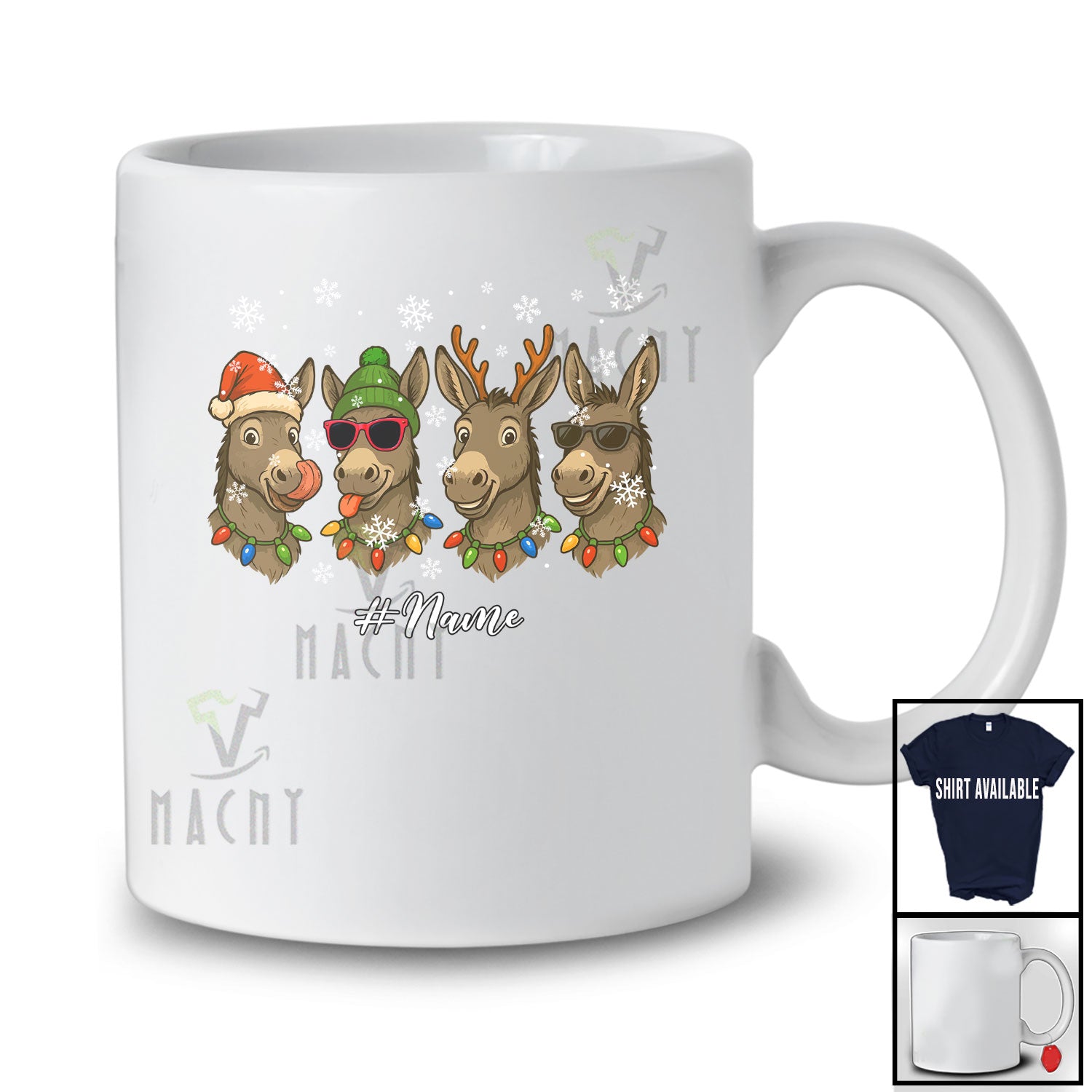 • Personalized Custom Name Four Santa Reindeer Mule Face; Awesome Christmas Farmer Farming T-Shirt. This cotton t-shirt is a durable staple product with a classic fit. One of the most popular items, it has a relaxed style made for everyday and casual wear.