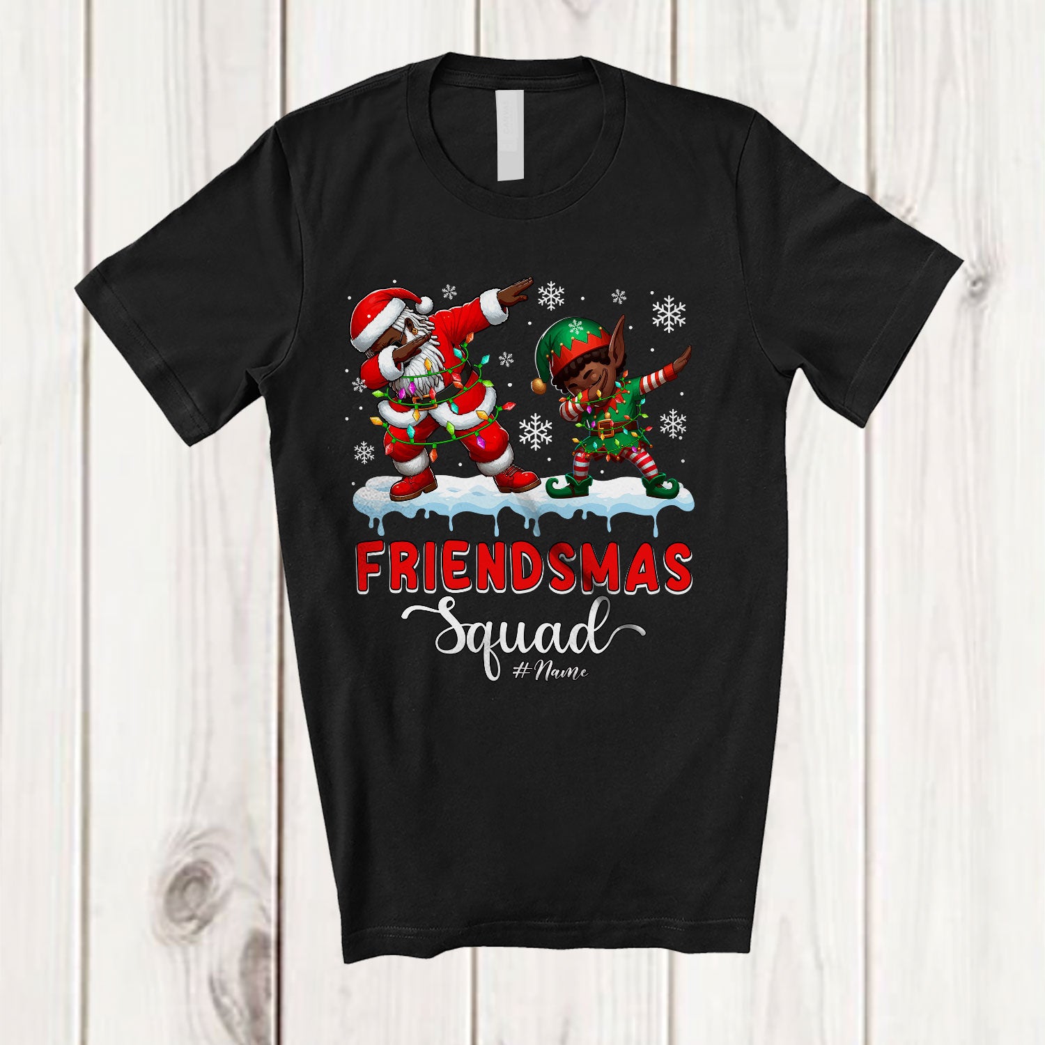 This Personalized Custom Name Friendsmas Squad; Amusing Christmas Dabbing Afro Santa Elf; African T-Shirt is great idea gift for your family, friends in this birthday, christmas, mother's day, father's day, patrick's day or any holiday.