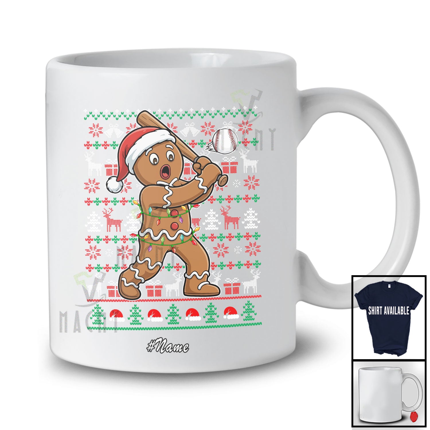 • Personalized Custom Name Gingerbread Playing Baseball; Humorous Christmas Sweater Player T-Shirt. This cotton t-shirt is a durable staple product with a classic fit. One of the most popular items, it has a relaxed style made for everyday and casual wear.