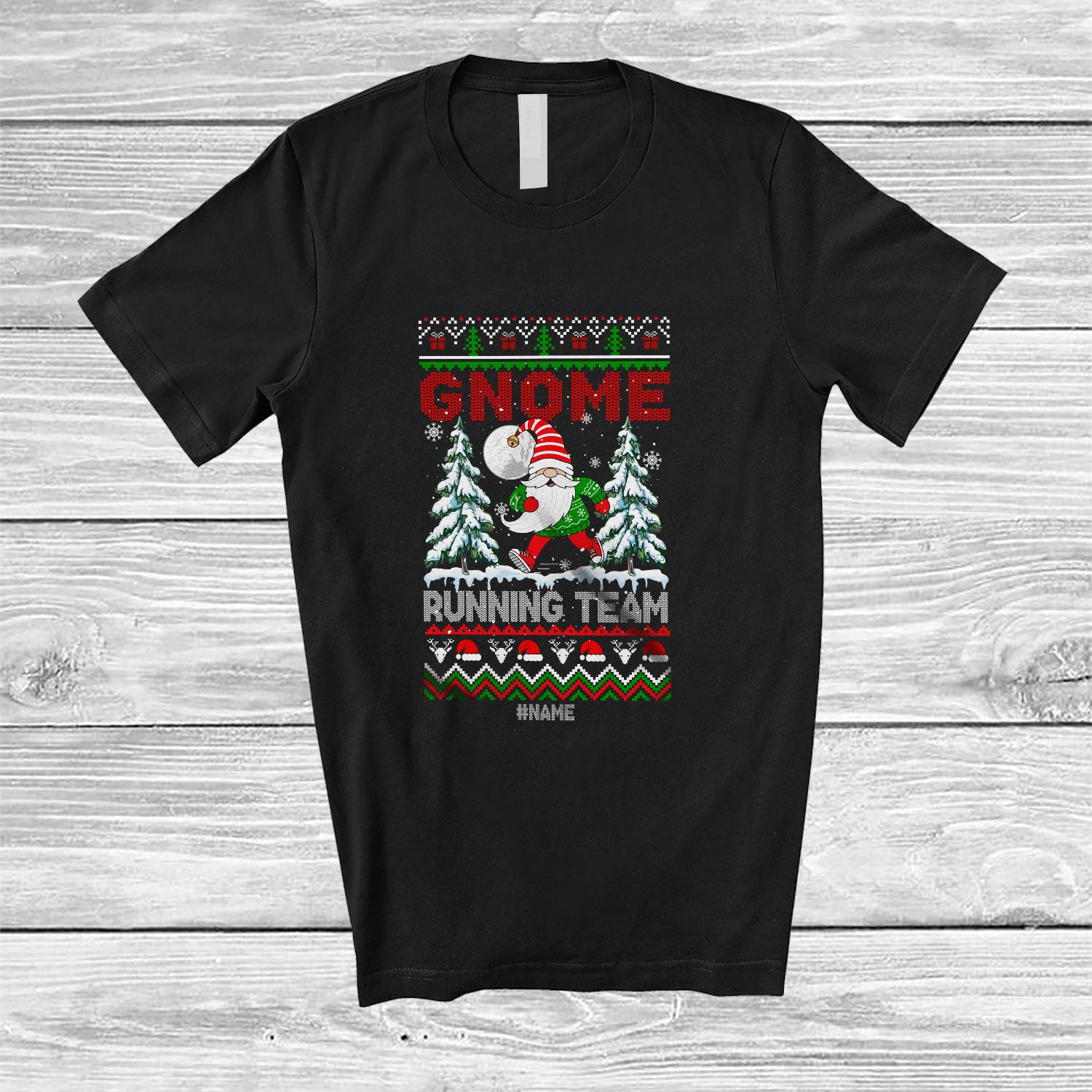 Personalized Custom Name Gnome Running Team; Amusing Christmas Tree Sweater Runner T-Shirt