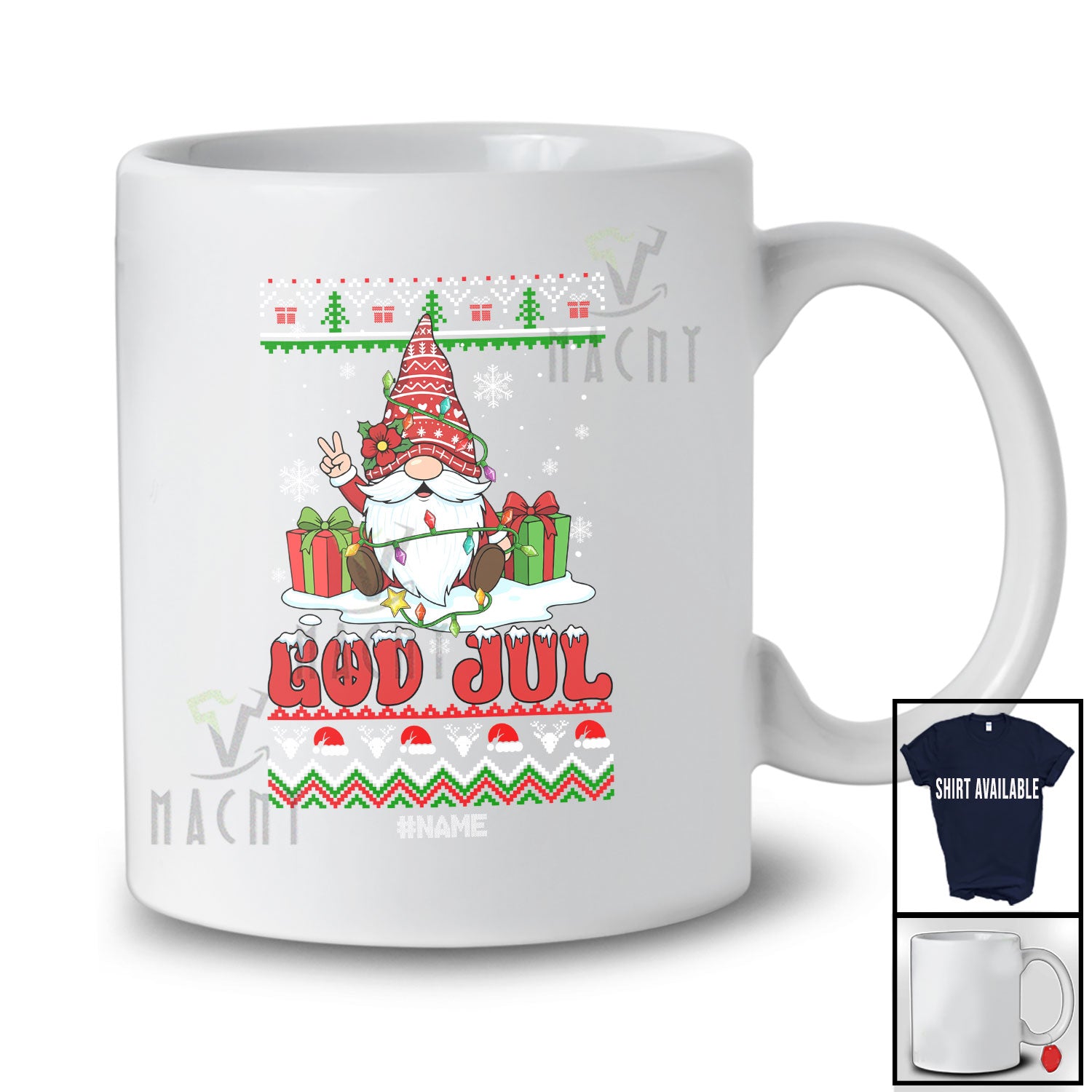 Personalized Custom Name God Jul; Amazing Christmas Lights Sweater Gnome Norwegian T-Shirt. This cotton t-shirt is a durable staple product with a classic fit. One of the most popular items, it has a relaxed style made for everyday and casual wear.
