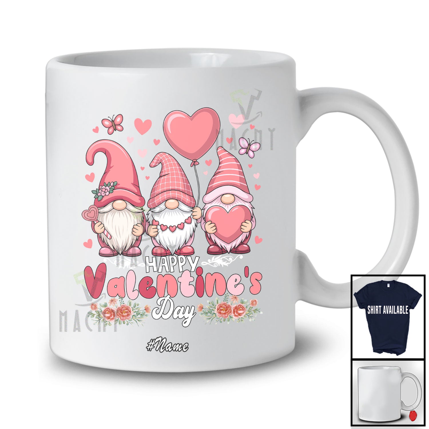 The Personalized Custom Name Happy Valentine's Day; Lovely Three Pink Gnomes Hearts Flowers; Couple T-Shirt is far and away, one of our most popular items. People can't seem to get enough of it.