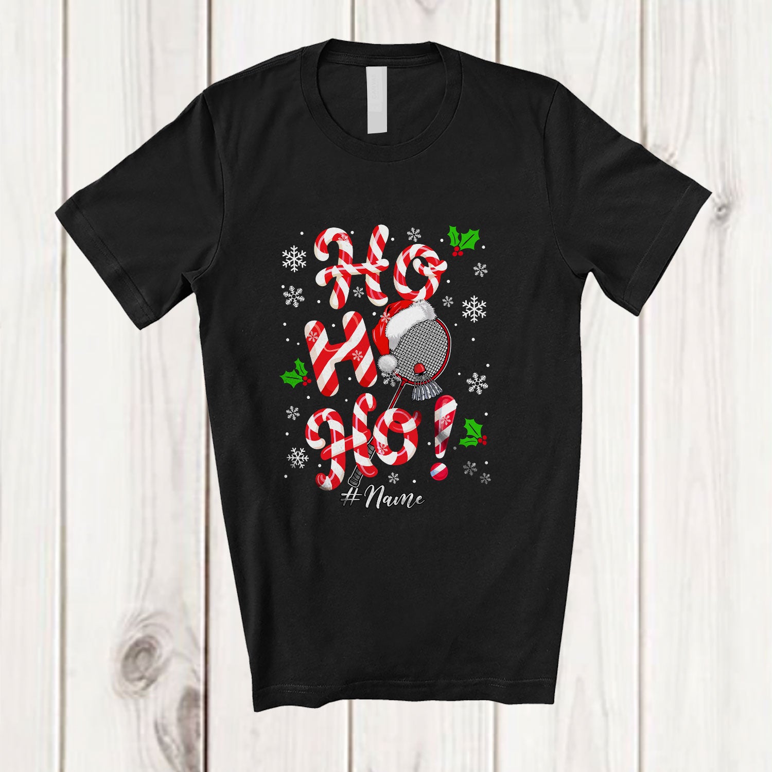 Personalized Custom Name Ho3; Amusing Christmas Candy Canes Badminton Player Team; Family T-Shirt