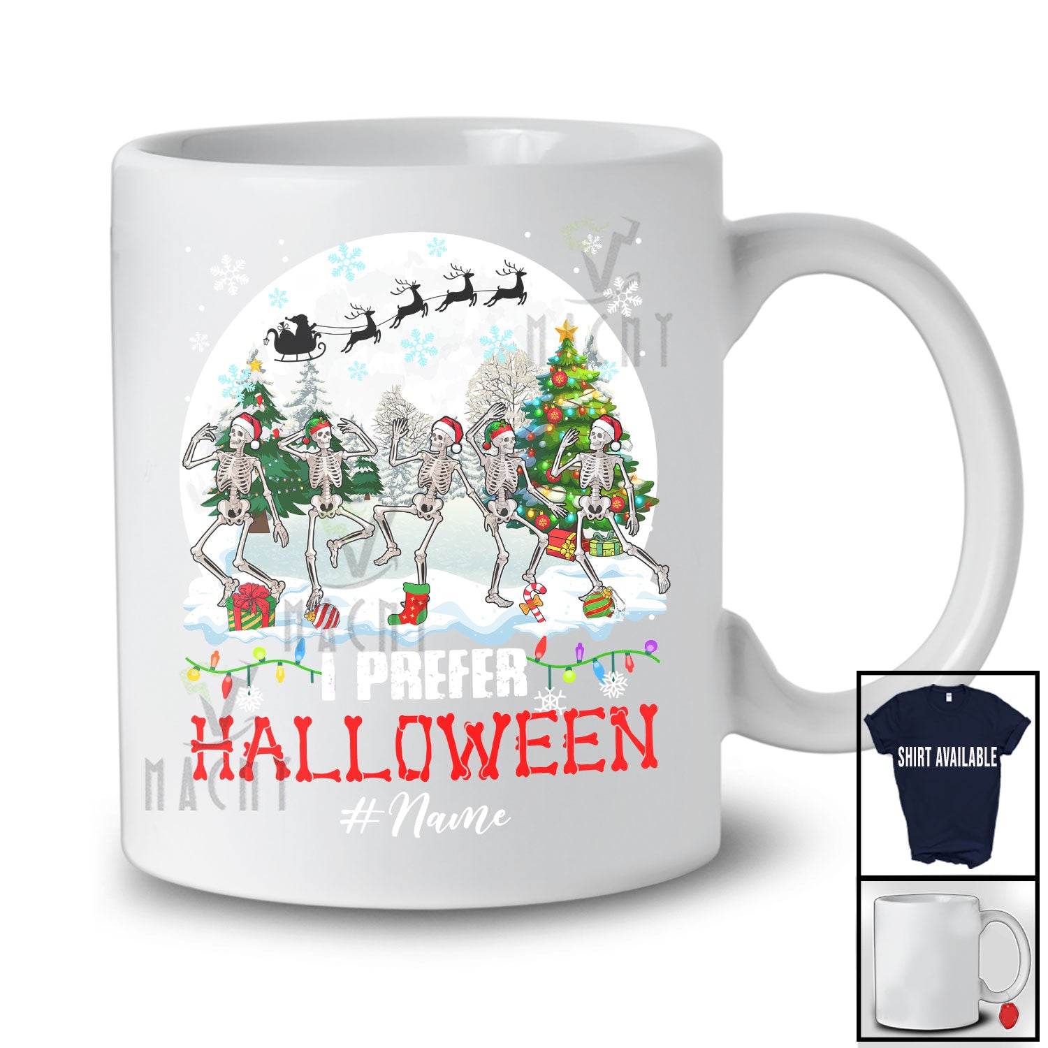 • Every product is unique, just like you. If you're looking for a product that fits the mold of your life, the Personalized Custom Name I Prefer Halloween; Amusing Christmas Moon Dancing Skeletons T-Shirt is for you.