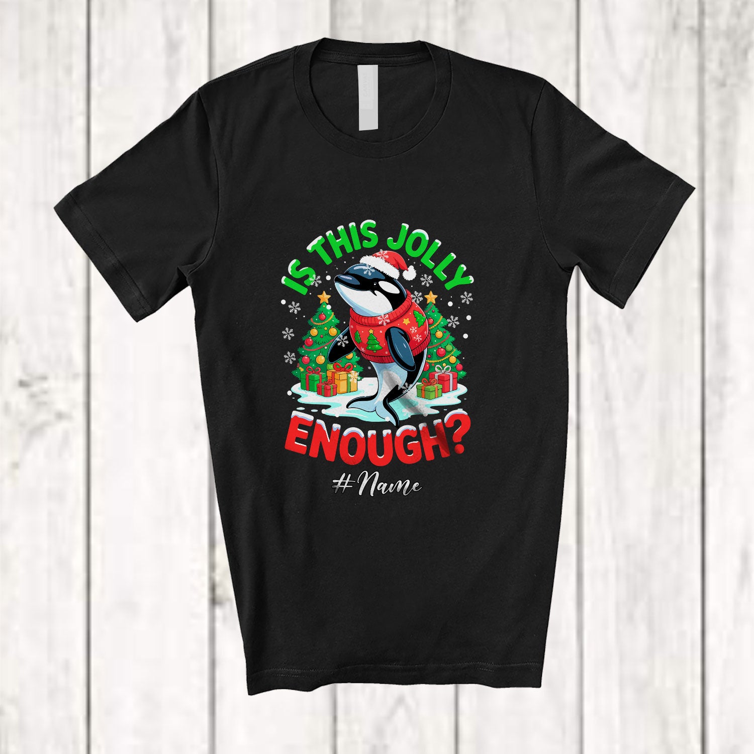 Personalized Custom Name Is This Jolly Enough; Humorous Christmas Tree Santa Orca Animal T-Shirt