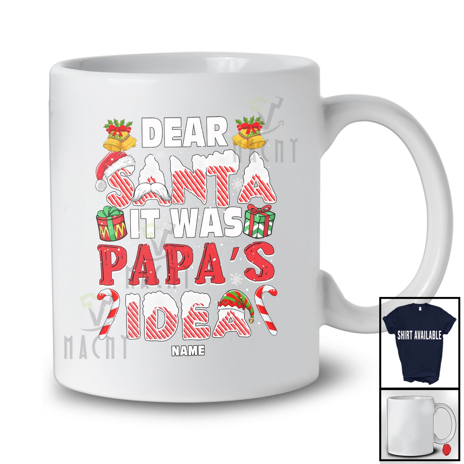 Personalized Custom Name It Was Papa's Idea; Joyful Christmas Santa Naughty Snow Family T-Shirt. This cotton t-shirt is a durable staple product with a classic fit. One of the most popular items, it has a relaxed style made for everyday and casual wear.
