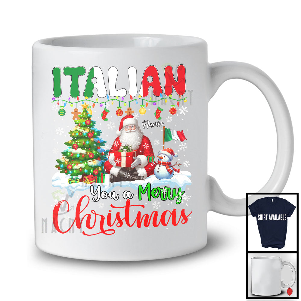 Personalized Custom Name Italian You A Merry Christmas; Fantastic Santa Italian Flag Snowman T-Shirt