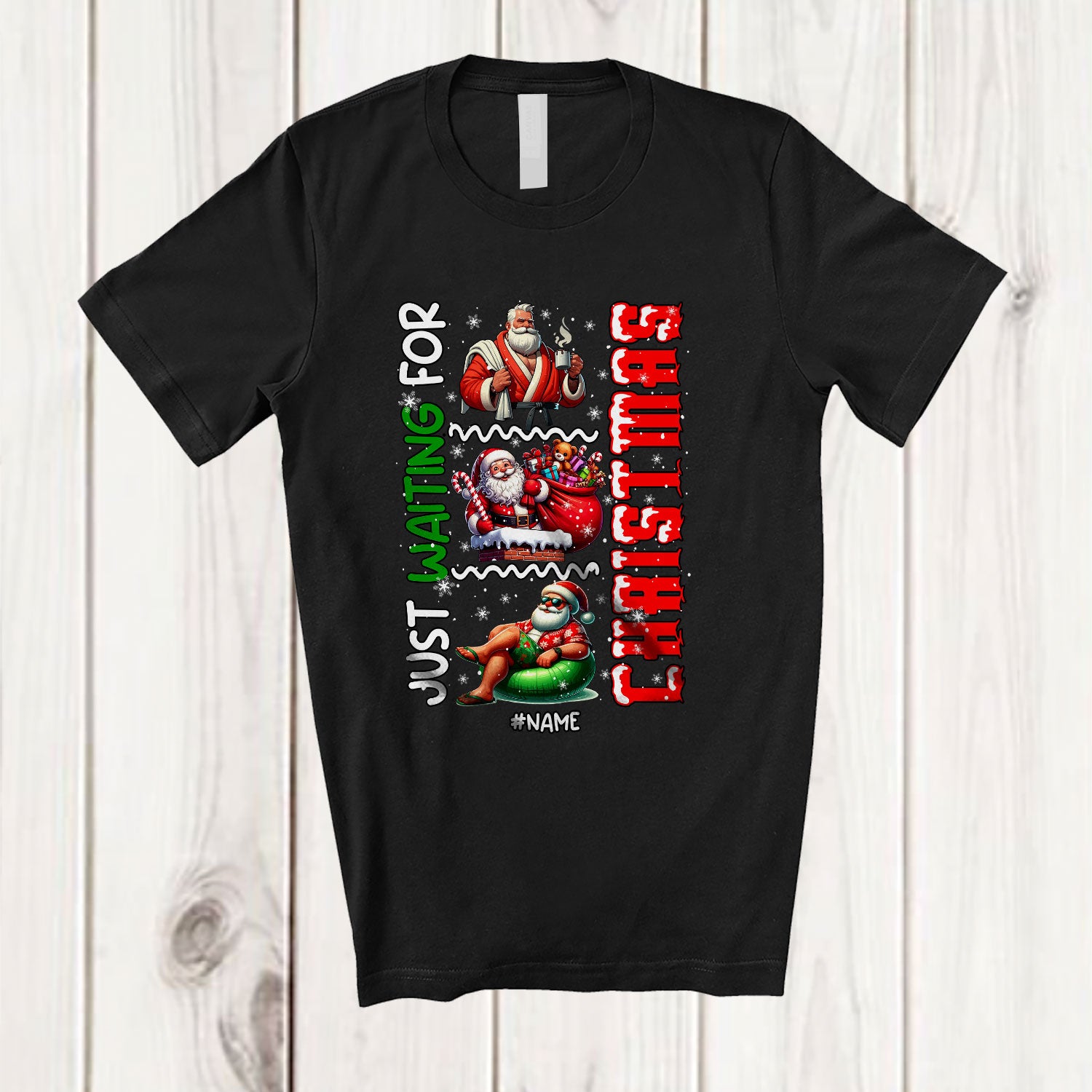 Personalized Custom Name Just Waiting For Christmas; Joyful X-mas Santa Relax Collection; Family T-Shirt