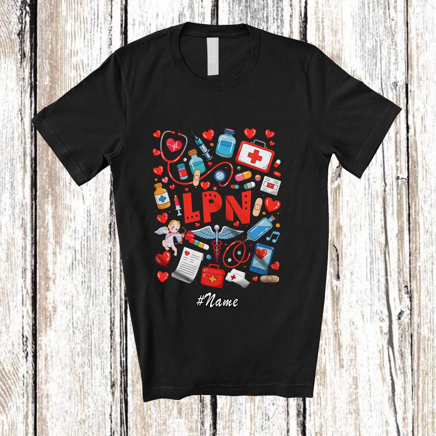 Personalized Custom Name LPN; Adorable Valentine's Day LPN Nurse Tools; Hearts Nursing T-Shirt. This cotton t-shirt is a durable staple product with a classic fit. One of the most popular items, it has a relaxed style made for everyday and casual wear.