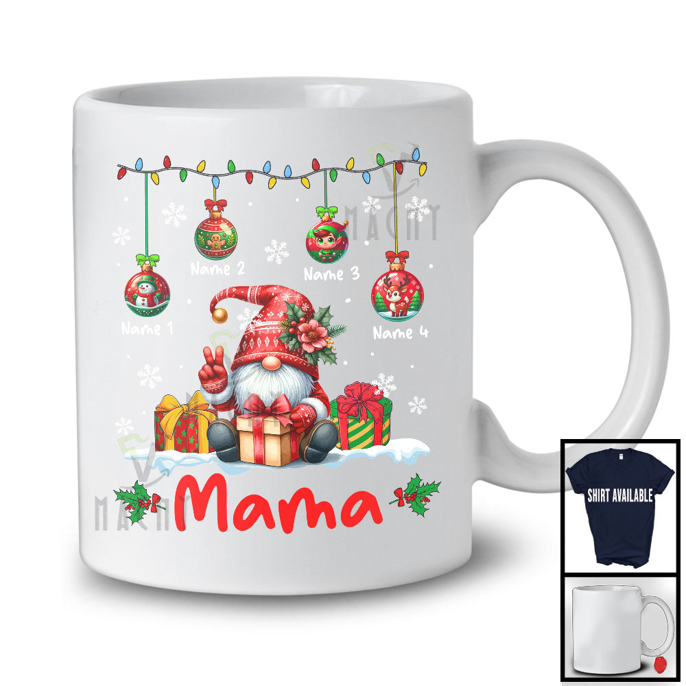 Personalized Custom Name Mama; Adorable Christmas Lights Ornaments Gnomes; Family T-Shirt. This cotton t-shirt is a durable staple product with a classic fit. One of the most popular items, it has a relaxed style made for everyday and casual wear.