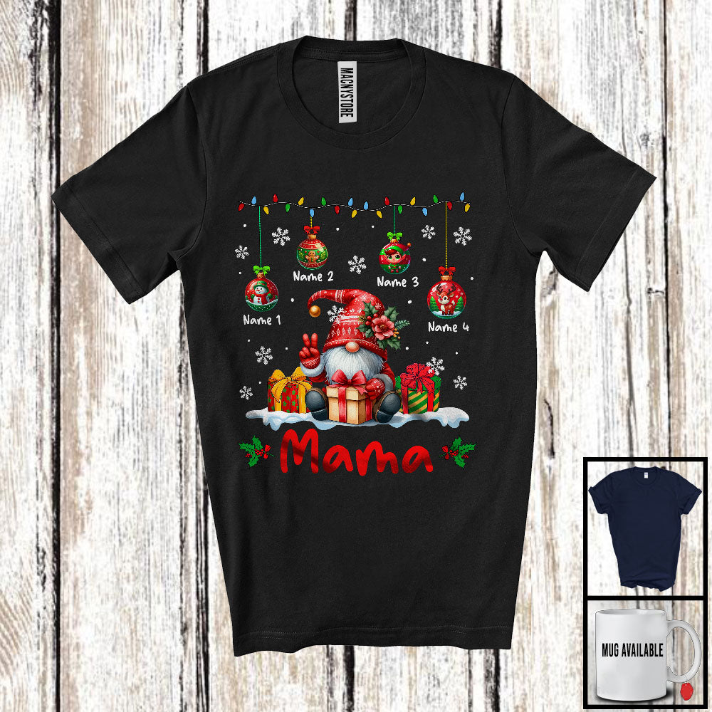 Personalized Custom Name Mama; Adorable Christmas Lights Ornaments Gnomes; Family T-Shirt