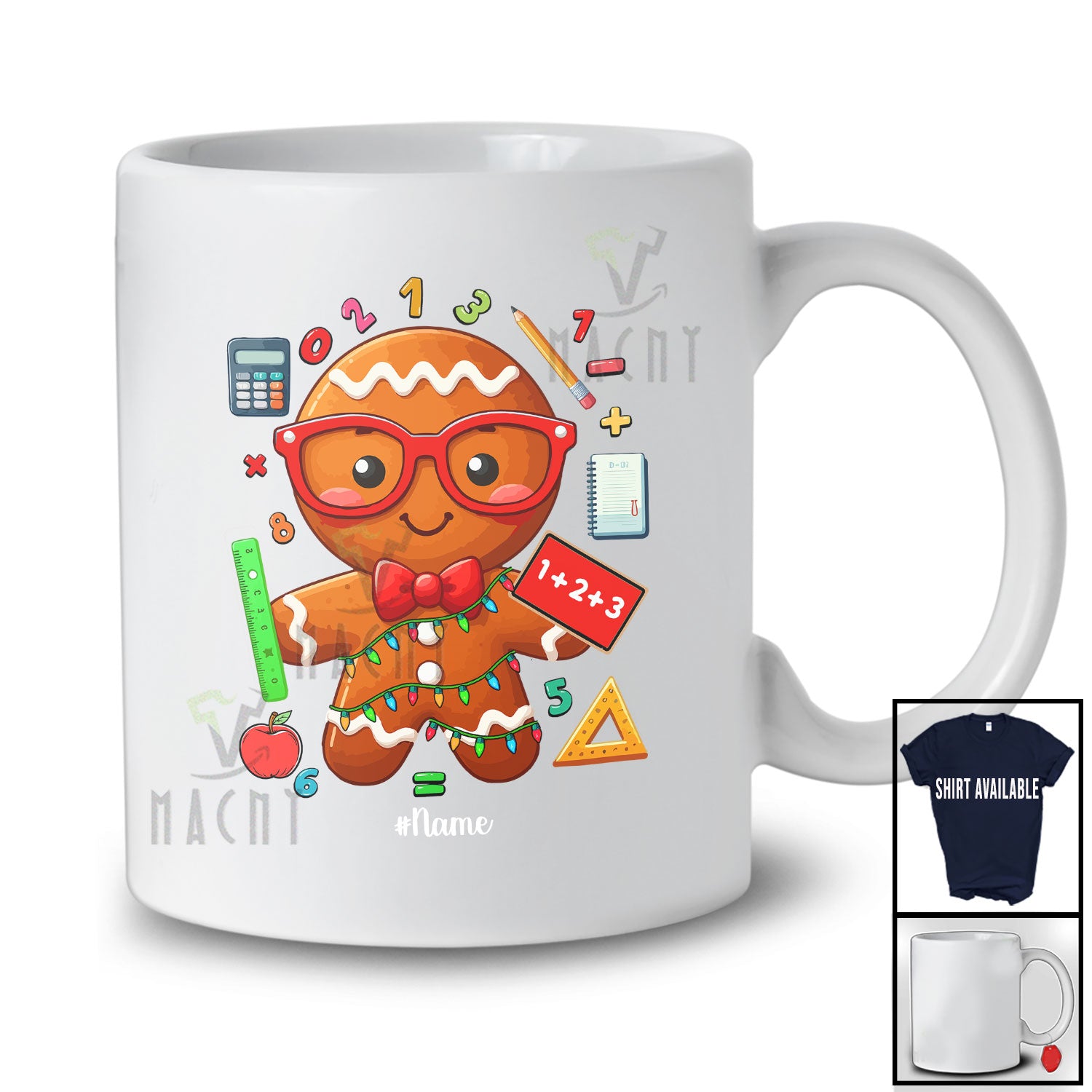 • Personalized Custom Name Math Teacher Gingerbread; Amusing Christmas Lights Baking Baker T-Shirt. This cotton t-shirt is a durable staple product with a classic fit. One of the most popular items, it has a relaxed style made for everyday and casual wear.
