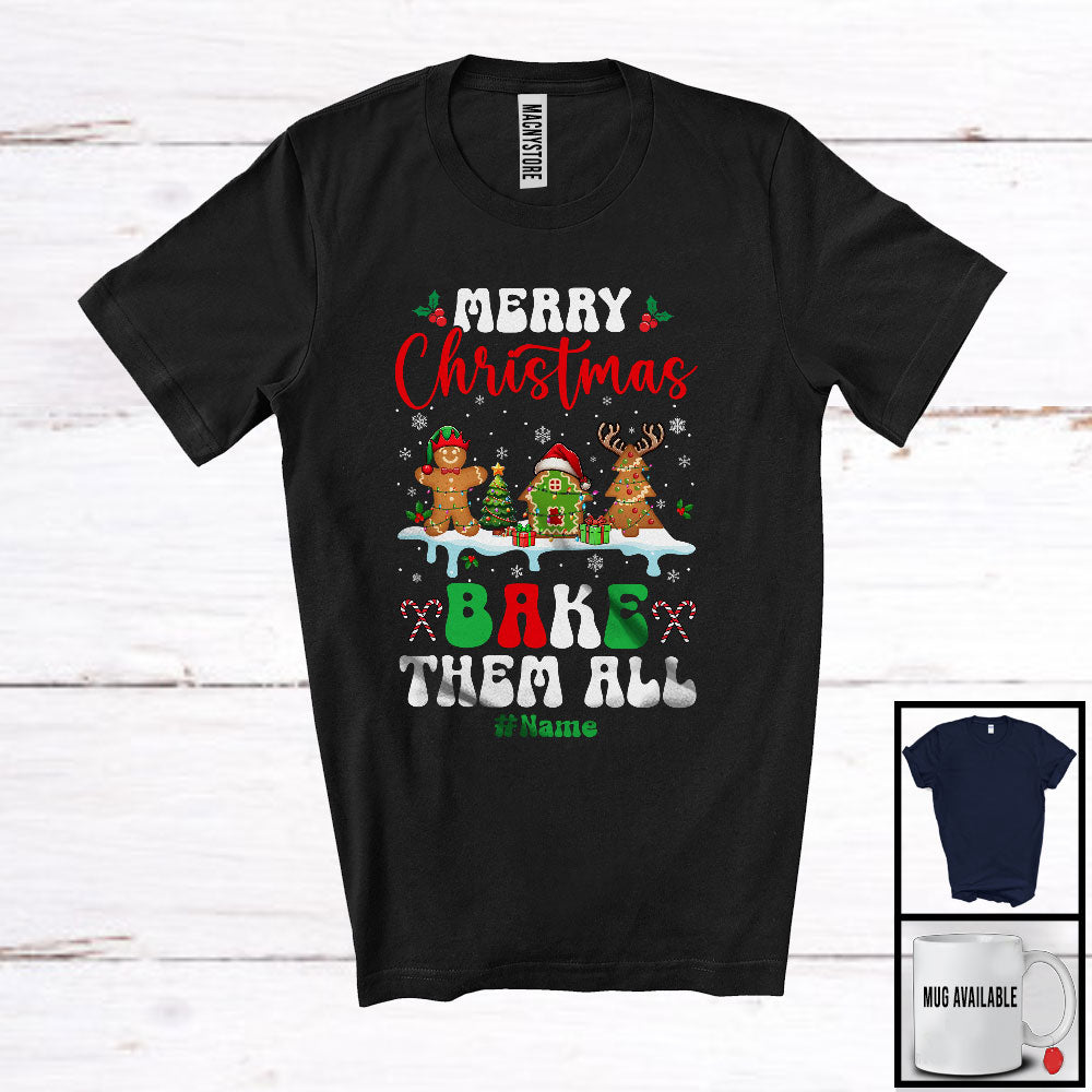 Personalized Custom Name Merry Christmas Bake Them All; Lovely Three Gingerbread Baker; Jobs T-Shirt