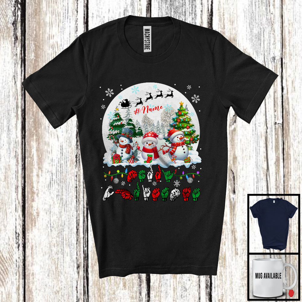 new MacnyStore - Personalized Custom Name Merry Christmas; Lovely Three ASL Snowmies; X-mas Moon Sign Language T-Shirt – Macnystore
