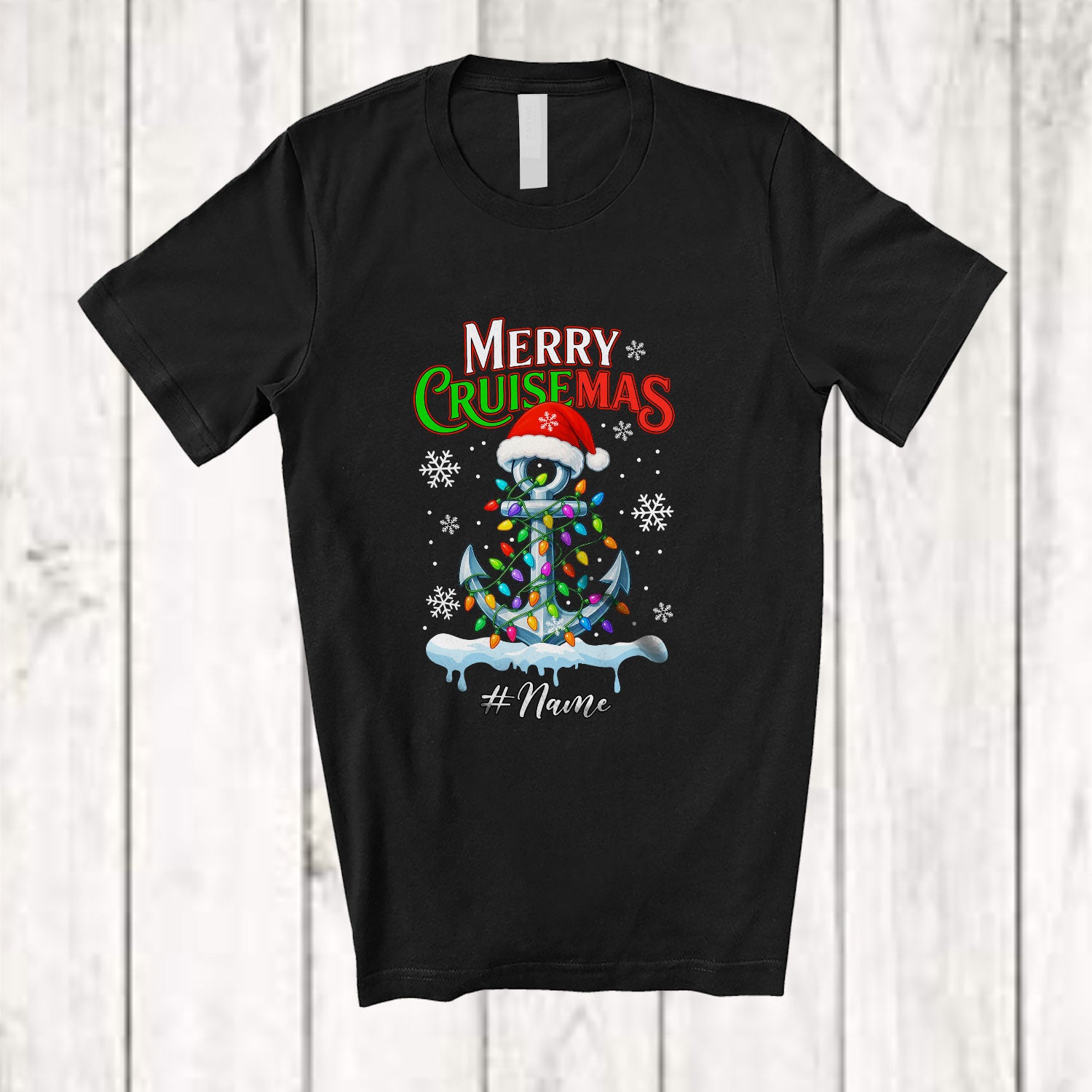 • Personalized Custom Name Merry Cruisemas; Wonderful Christmas Lights Santa Anchor Cruise Ship T-Shirt. This cotton t-shirt is a durable staple product with a classic fit. One of the most popular items, it has a relaxed style made for everyday and casual wear.