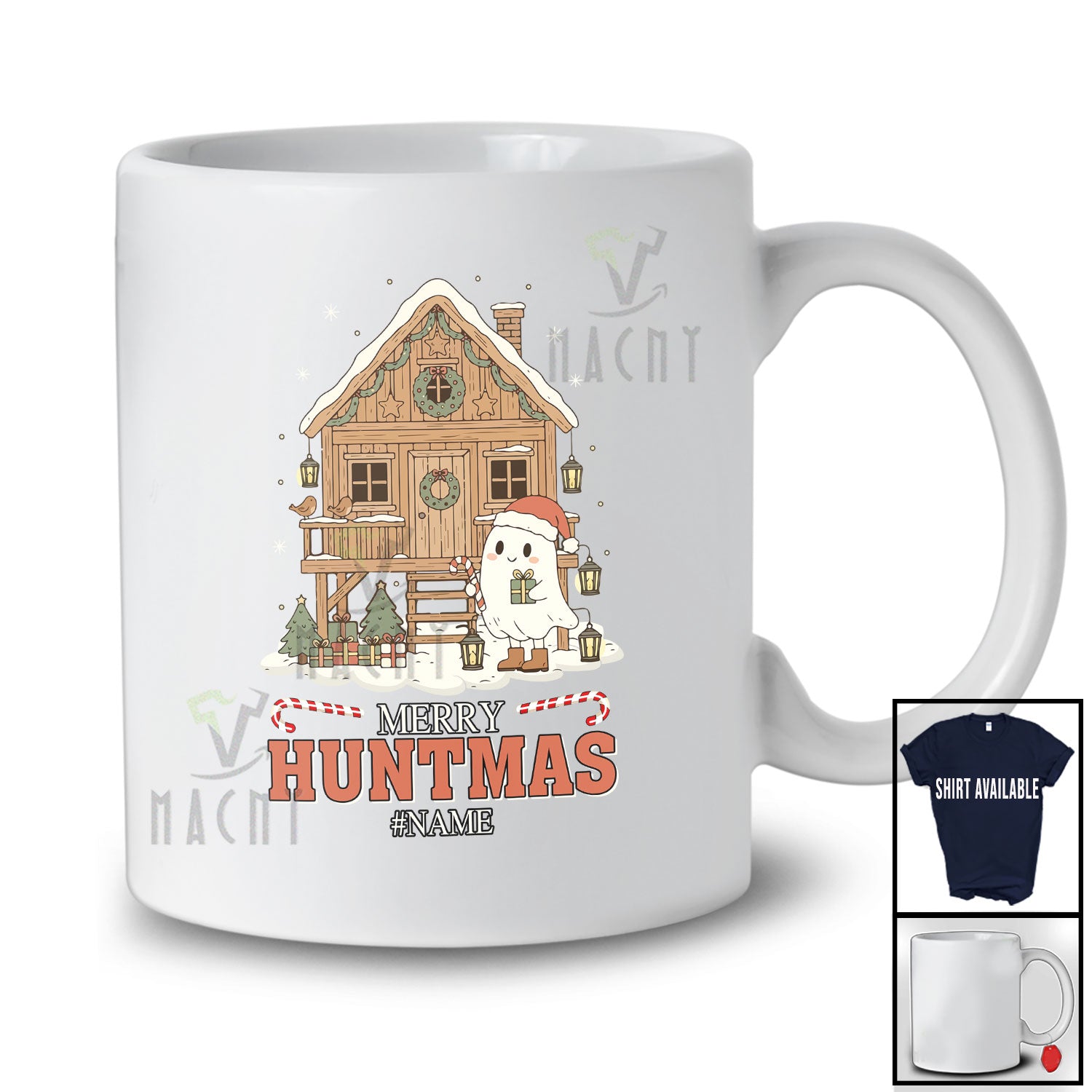 • Personalized Custom Name Merry Huntmas; Humorous Christmas Santa Boo Ghost Go Hunting T-Shirt. This cotton t-shirt is a durable staple product with a classic fit. One of the most popular items, it has a relaxed style made for everyday and casual wear.