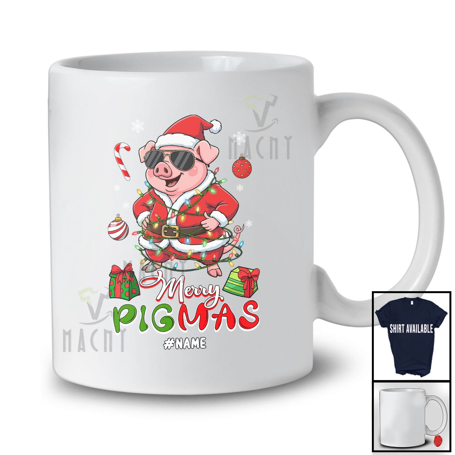 Personalized Custom Name Merry Pigmas; Fantastic Christmas Santa Pig X-mas Lights Farmer T-Shirt. This cotton t-shirt is a durable staple product with a classic fit. One of the most popular items, it has a relaxed style made for everyday and casual wear.