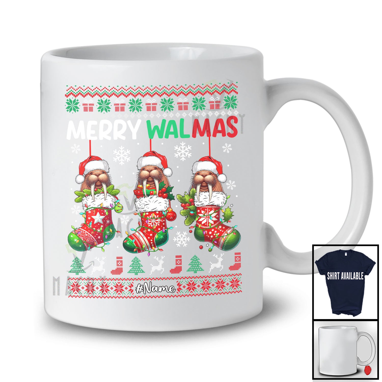 Life is too short to live without the Personalized Custom Name Merry Walmas; Lovely Christmas Sweater 3 Santa Walrus In X-mas Socks T-Shirt. Be happy. Be Content. Be Satisfied.