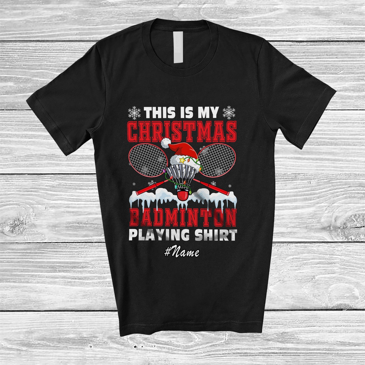 Personalized Custom Name My Christmas Badminton Playing Shirt; Joyful Sport Player Santa T-Shirt