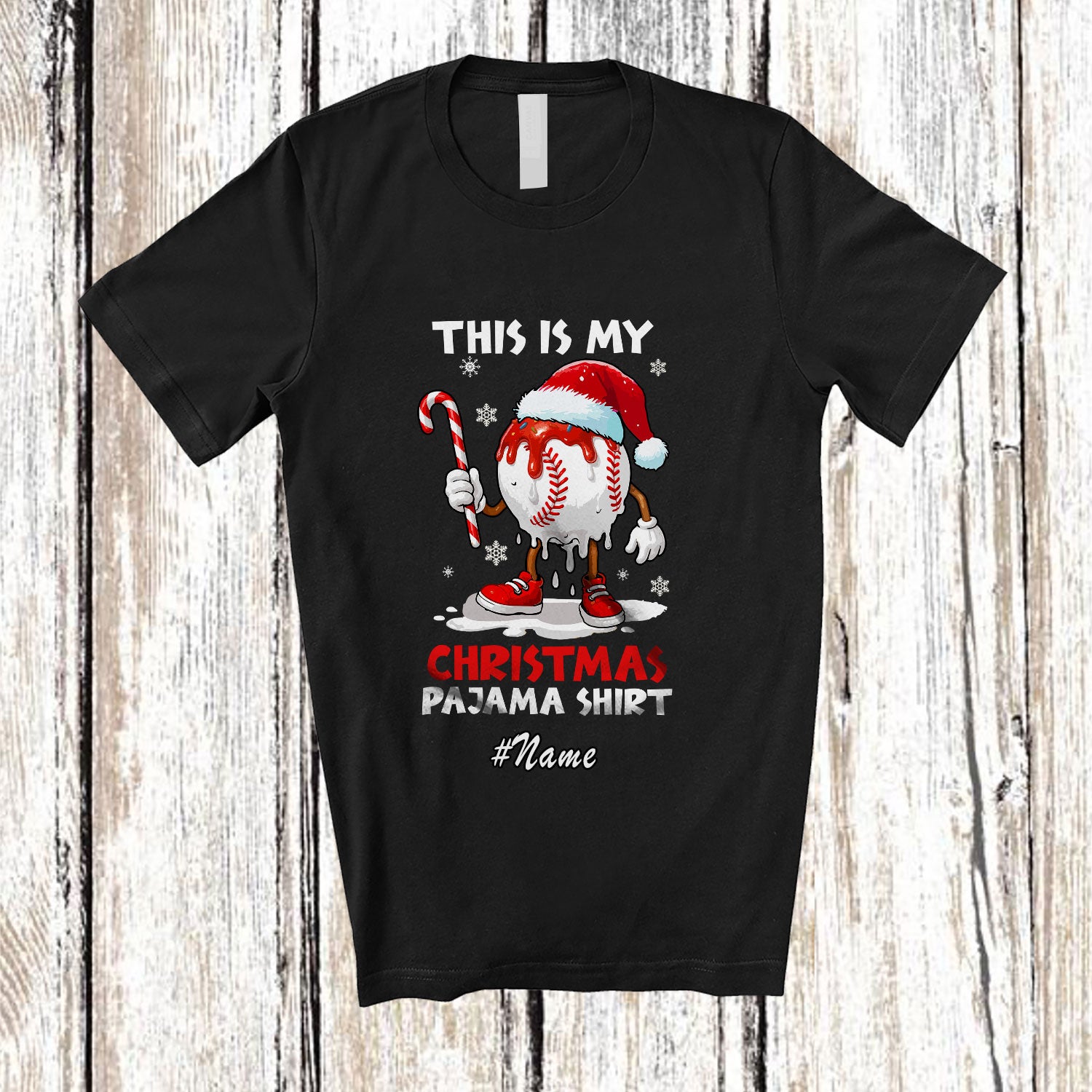 Personalized Custom Name My Christmas Pajama Shirt; Lovely Melting Santa Baseball Player T-Shirt. This cotton t-shirt is a durable staple product with a classic fit. One of the most popular items, it has a relaxed style made for everyday and casual wear.