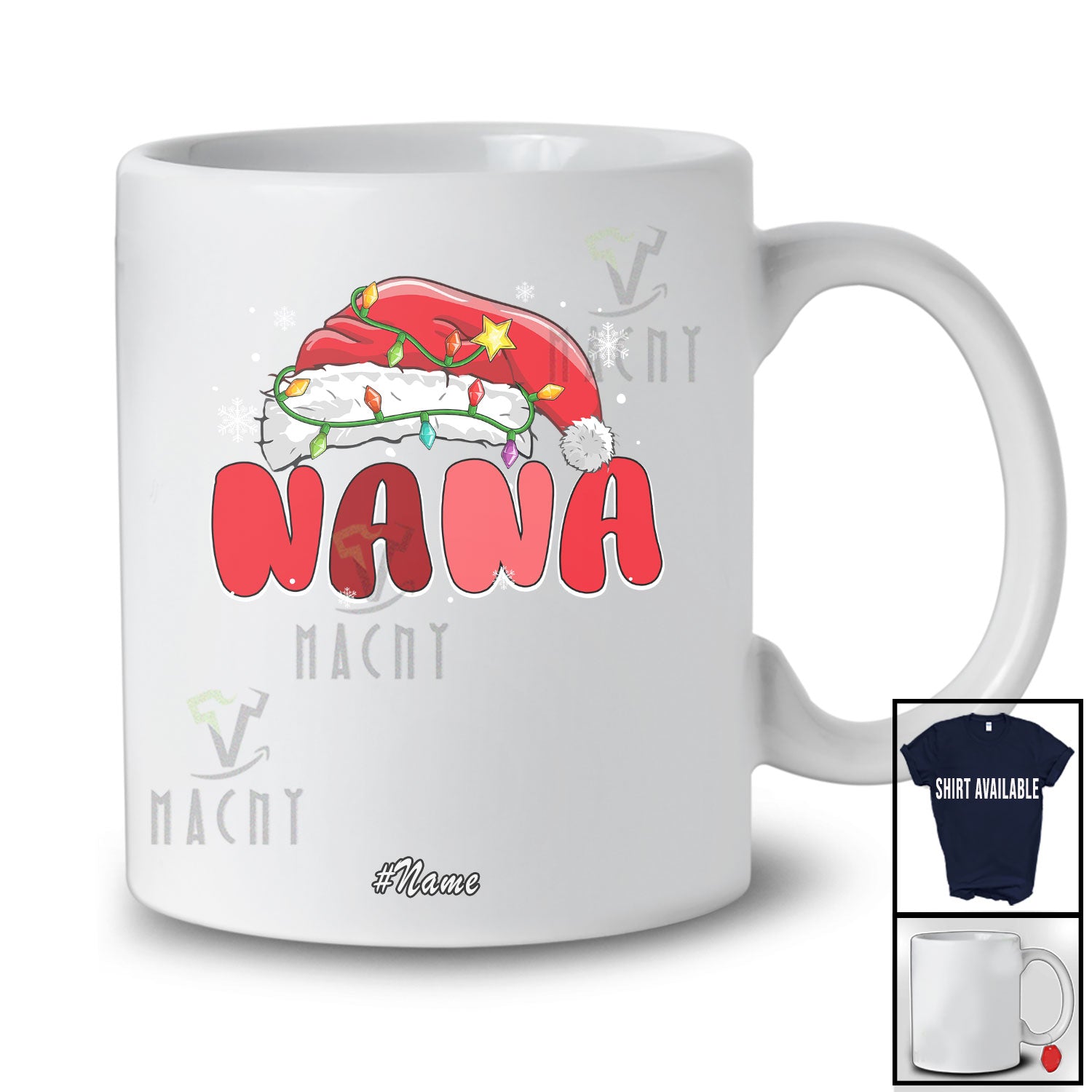 Personalized Custom Name Nana; Wonderful Christmas Lights Santa; X-mas Pajama Family T-Shirt. This cotton t-shirt is a durable staple product with a classic fit. One of the most popular items, it has a relaxed style made for everyday and casual wear.