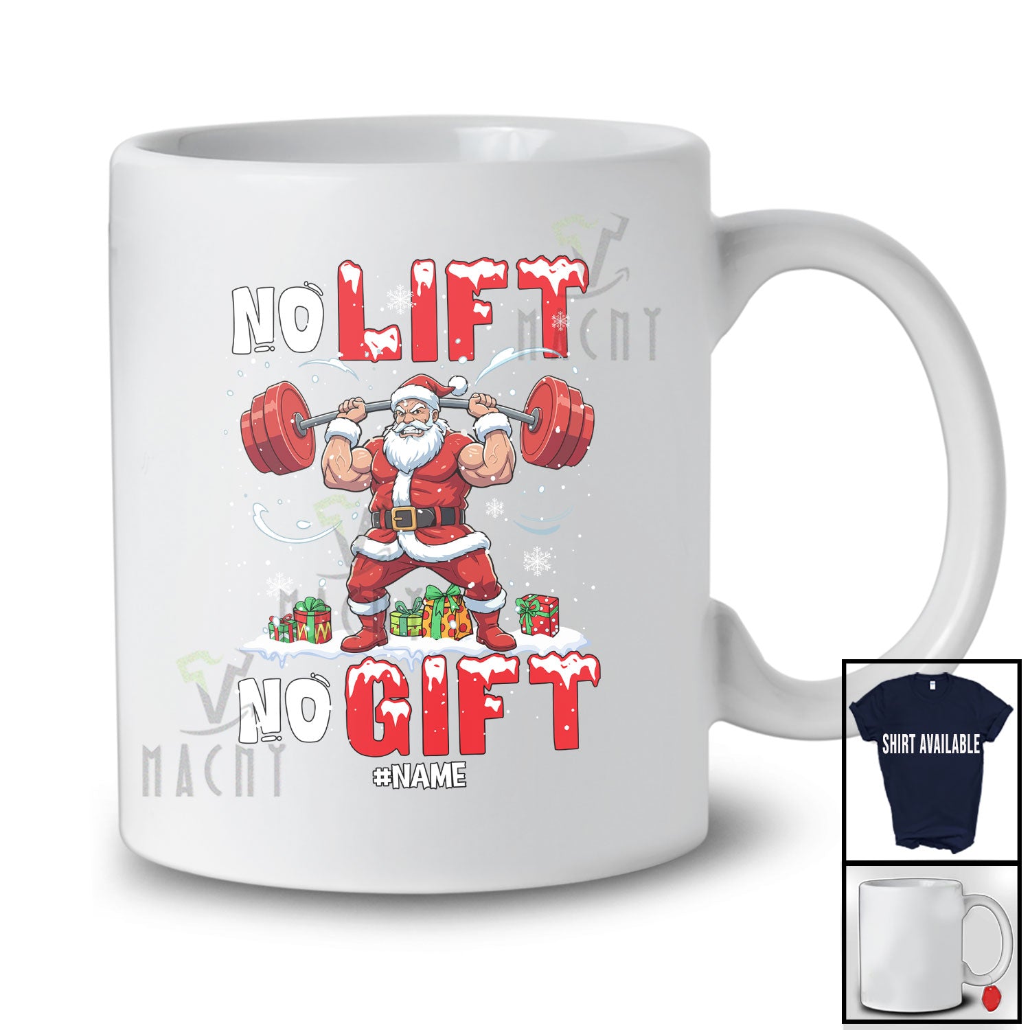 Personalized Custom Name No Lift No Gift; Amazing Christmas Santa Weightlifting Fitness Workout T-Shirt. This cotton t-shirt is a durable staple product with a classic fit. One of the most popular items, it has a relaxed style made for everyday and casual wear.