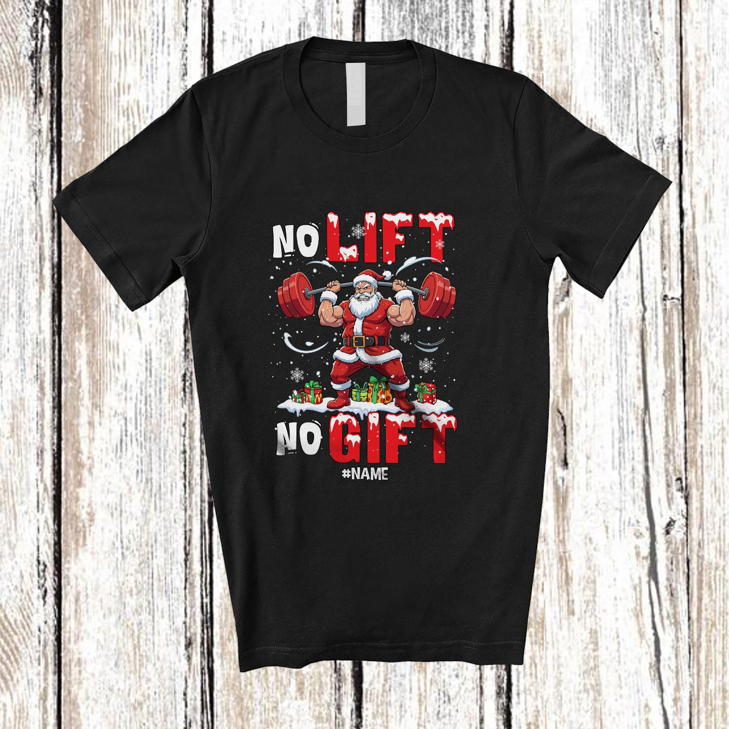 Personalized Custom Name No Lift No Gift; Amazing Christmas Santa Weightlifting Fitness Workout T-Shirt