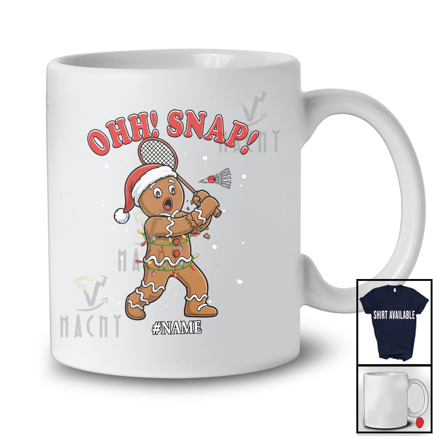 new MacnyStore - Personalized Custom Name Ohh Snap; Amusing Christmas Gingerbread Playing Badminton Player T-Shirt – Macnystore