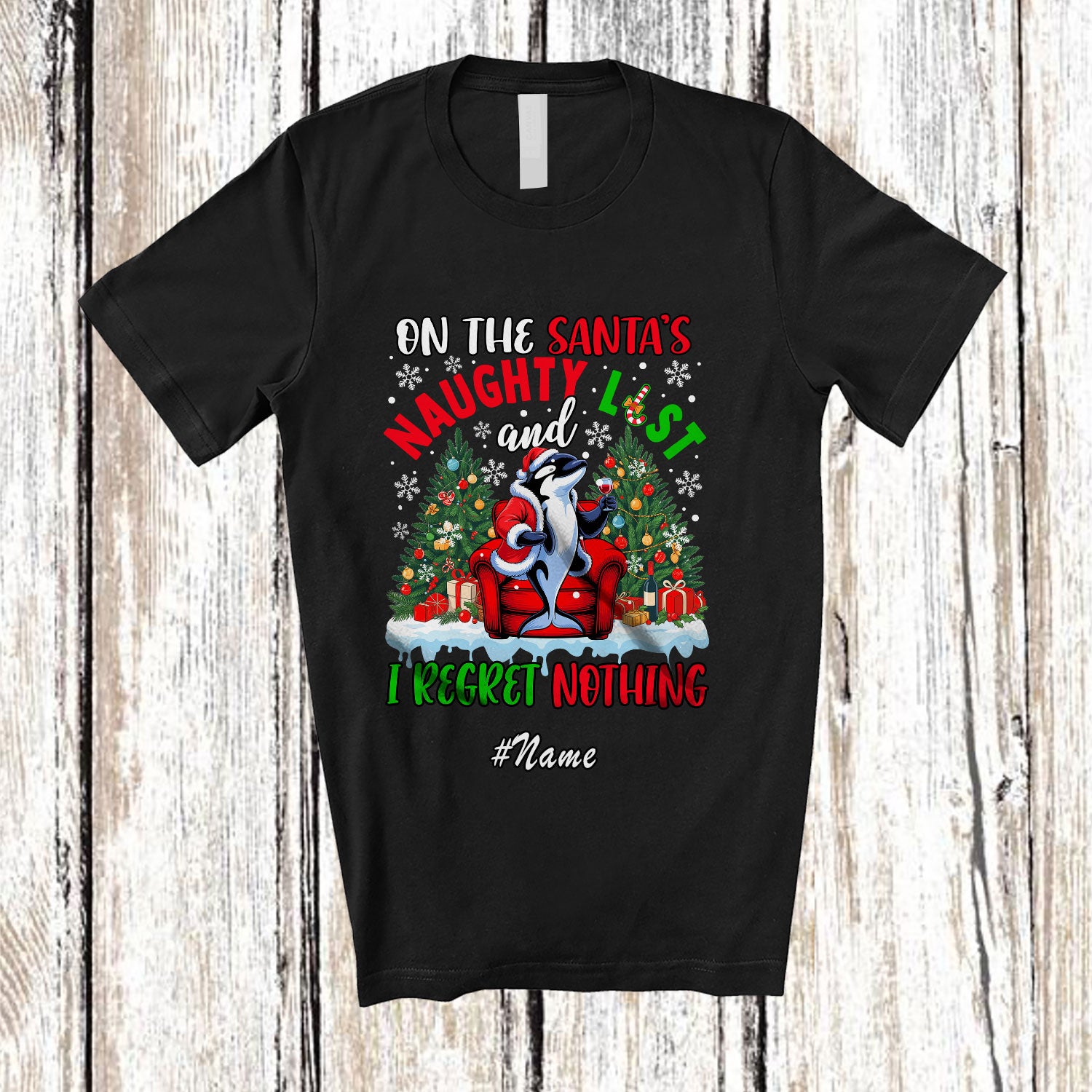 new MacnyStore - Personalized Custom Name On Santa's Naughty List; Joyful Christmas Orca Drinking T-Shirt – Macnystore
